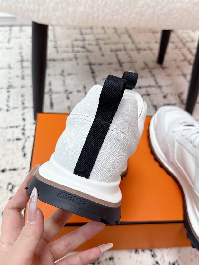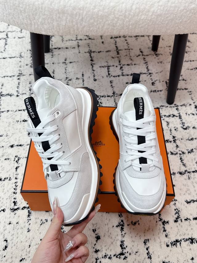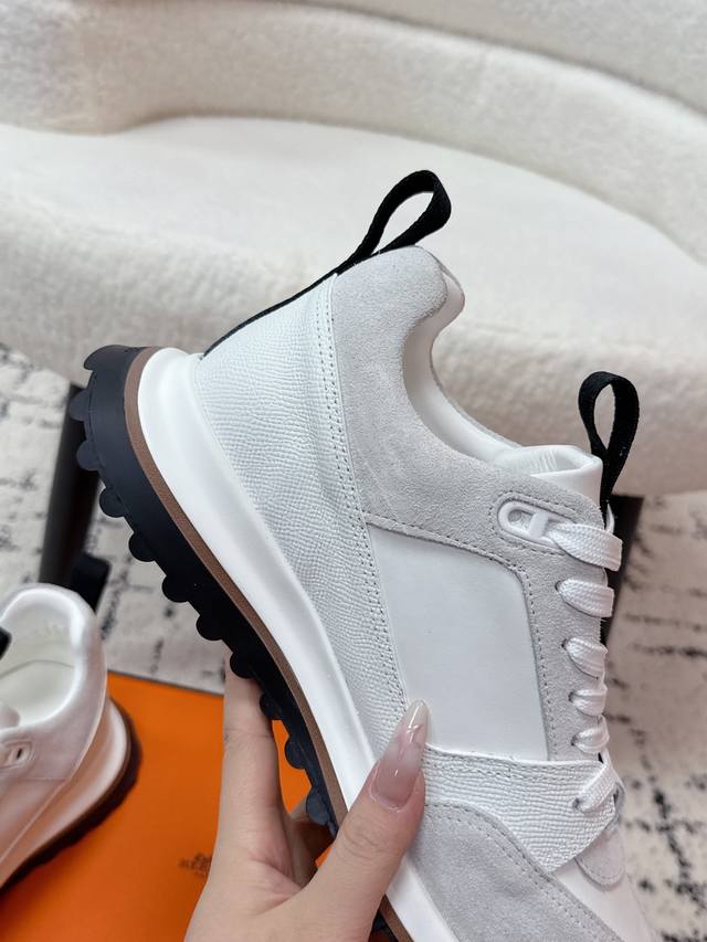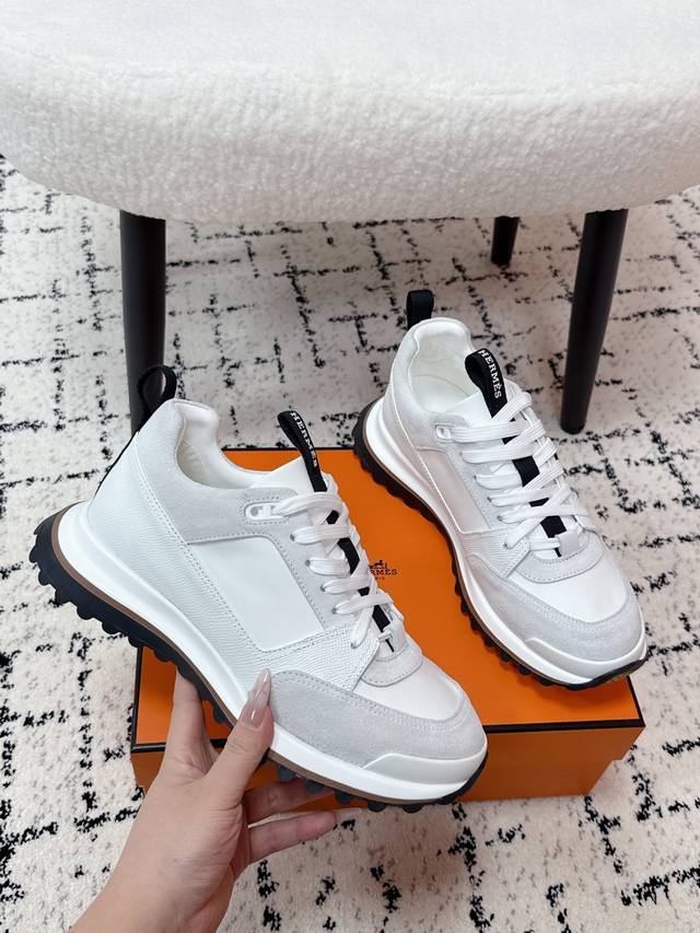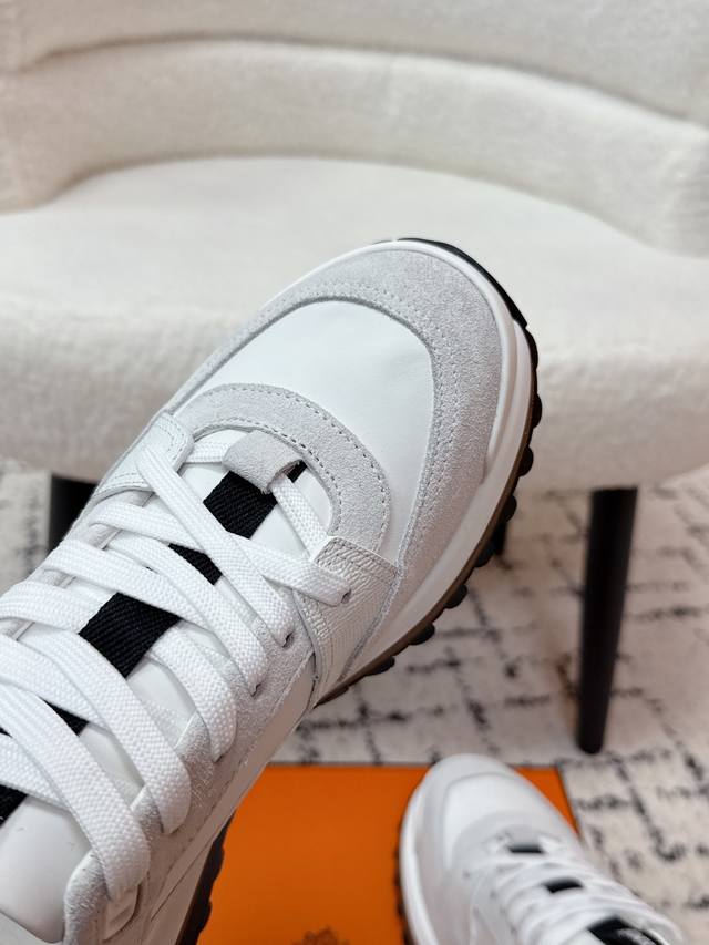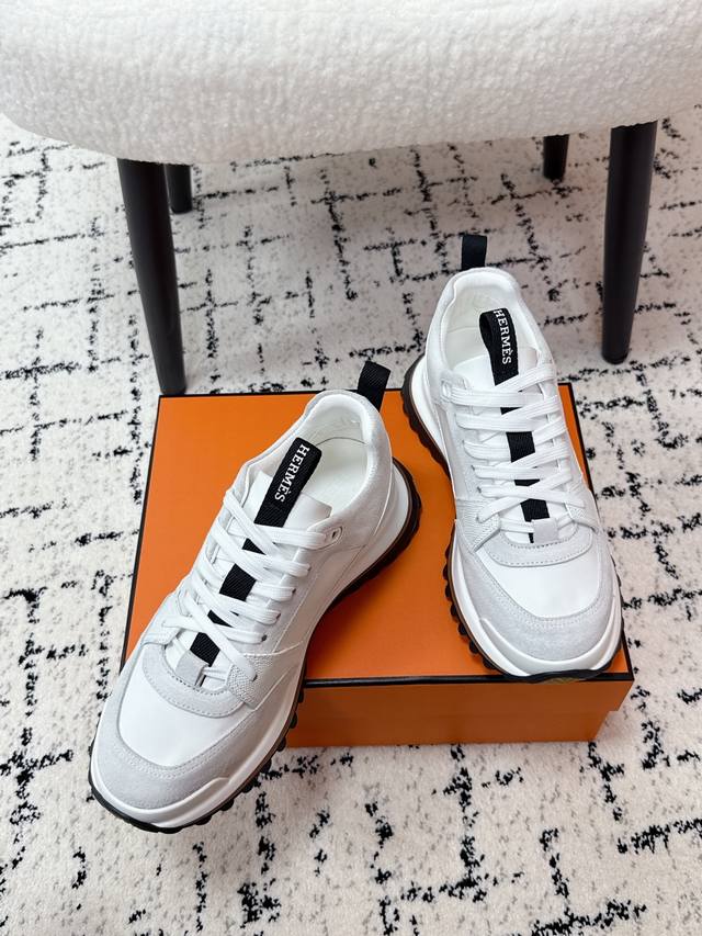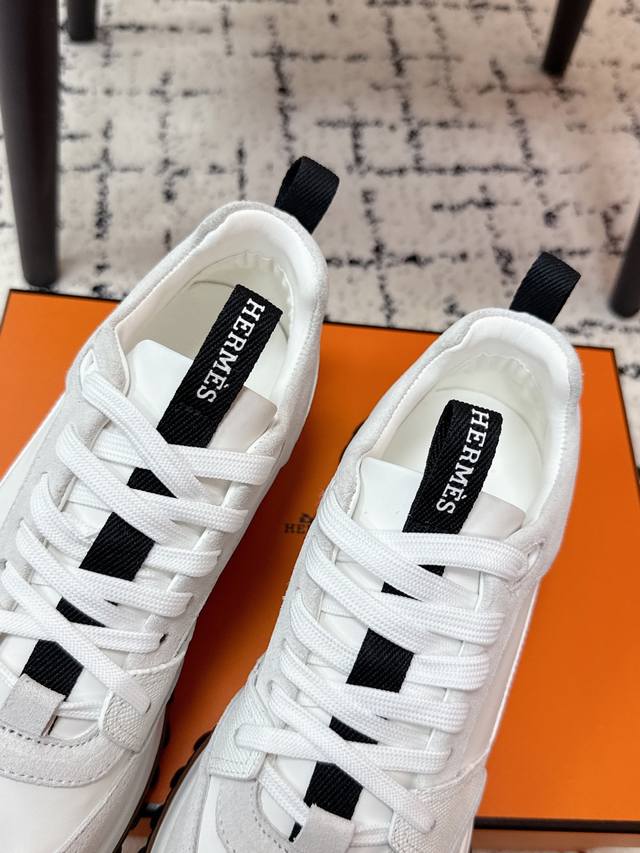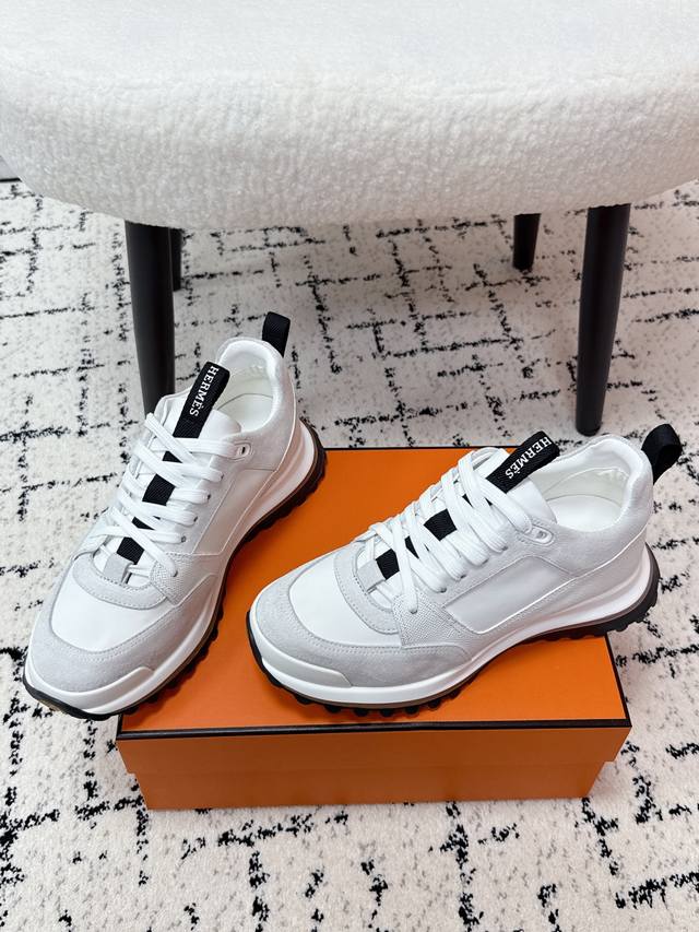 Men's Hermes 25 Leader New Round Toe Lace-up Low-top Sporty Casual Shoes DDD New arrival at boutiques. Every detail of the shoes is meticulously crafted and eye-catching. Elegant patchwork elements highlight a refined temperament! The fashionable flyknit lace-up design adds a casual touch, while the exquisite lines subtly embody the family design language. The delicate lines perfectly fit the foot shape, naturally outlining a stylish silhouette and achieving a visually striking effect, fully interpreting a unique sporty style! DDD Upper: Nappa calfskin suede sheepskin DDD Lining: Top-grain mesh cowhide insole DDD Outsole: Ultra-lightweight TPU foam rubber two-tone molded outsole DDD Size: #Men's 39-45, 45 custom-made DDD