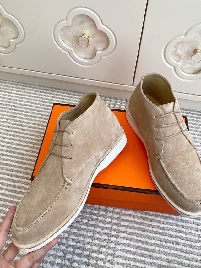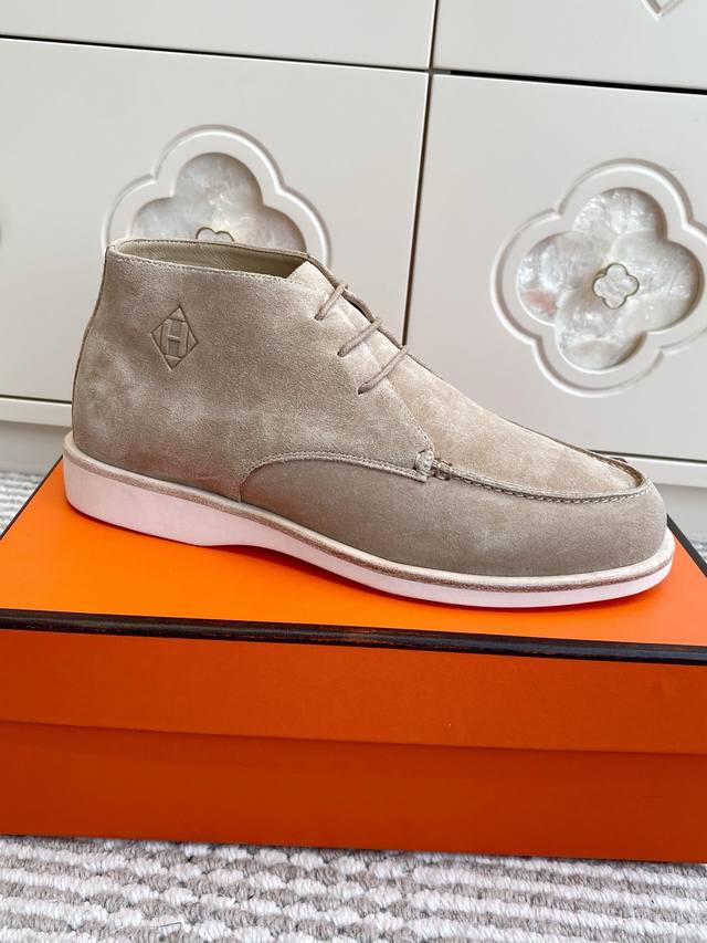 / Men's Hermes Suede Lace-up Casual Ankle Boots, Top Quality, Classic "H" Logo, R