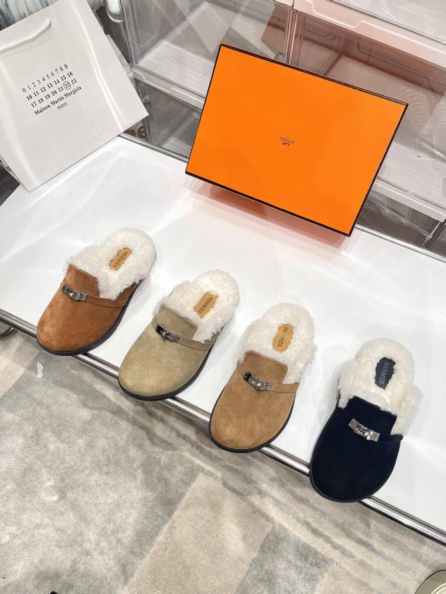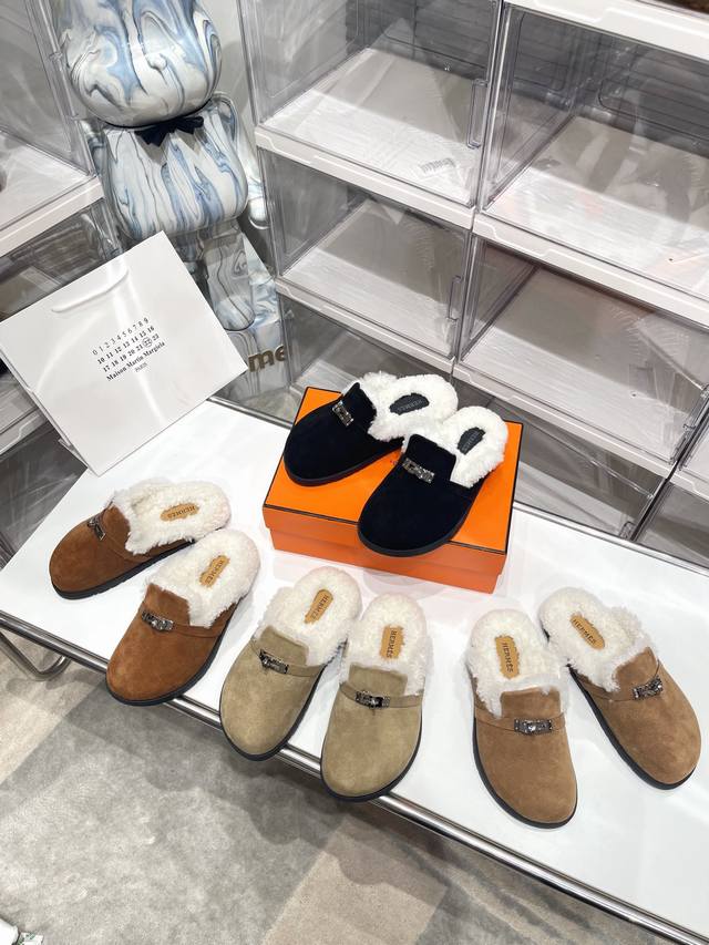 Men's size 10 Hermes adorable mules. Classic family design! Looks good with everything! Casual yet sophisticated feel, excellent comfort, pairs perfectly with colorful socks for a trendy and high-end look. Top-quality genuine wool upper: Imported cow suede; Lining: Imported sheepskin; Insole: Imported mixed sheepskin; Outsole: TPU non-slip and wear-resistant outsole. Sizes: Men's 39-44, 45, 46 (custom made); Women's 35-40, 41, 42 (custom made).
