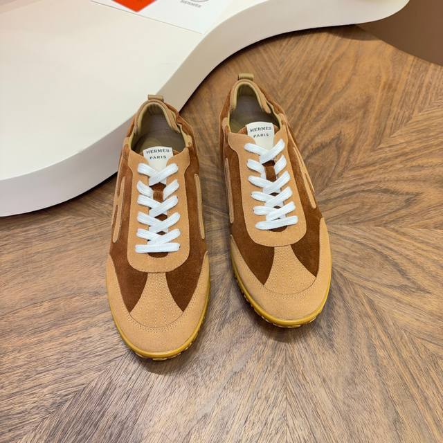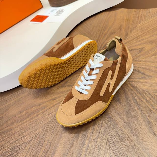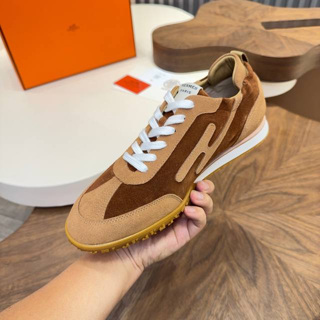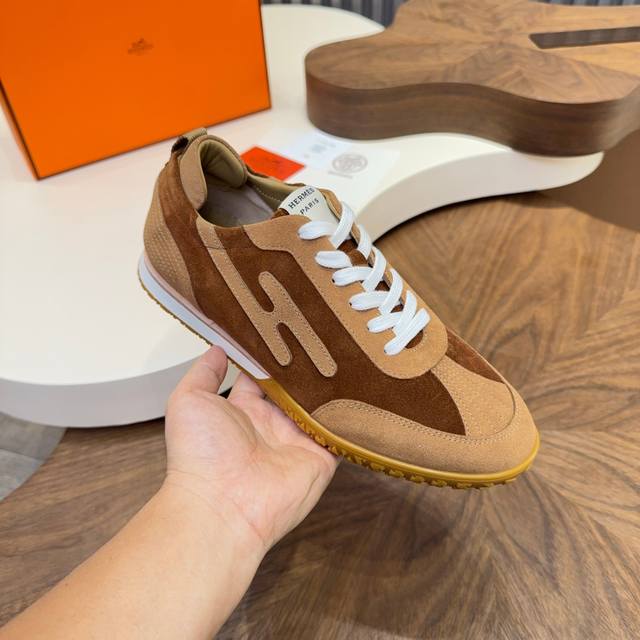 New Hermes Argande training shoes, white sneakers, perforated soft calfskin athletic shoes, with a sole adorned with classic Medor studs, creating a comfortable and casual style. Very lightweight and comfortable to wear. Real photos of men's athletic shoes. The most worthwhile Hermes men's athletic shoes to buy. Legend has it that you should buy them even without needing to purchase other items. Trendy, fashionable, comfortable, and versatile. Although the price has increased, it's still not expensive. The new colorways are all very nice. Men's style, not as many choices, but still very good-looking. Imported cowhide suede material, sheepskin lining, original molded outsole. Size: Men's 39-44, 38-45 (customizable).