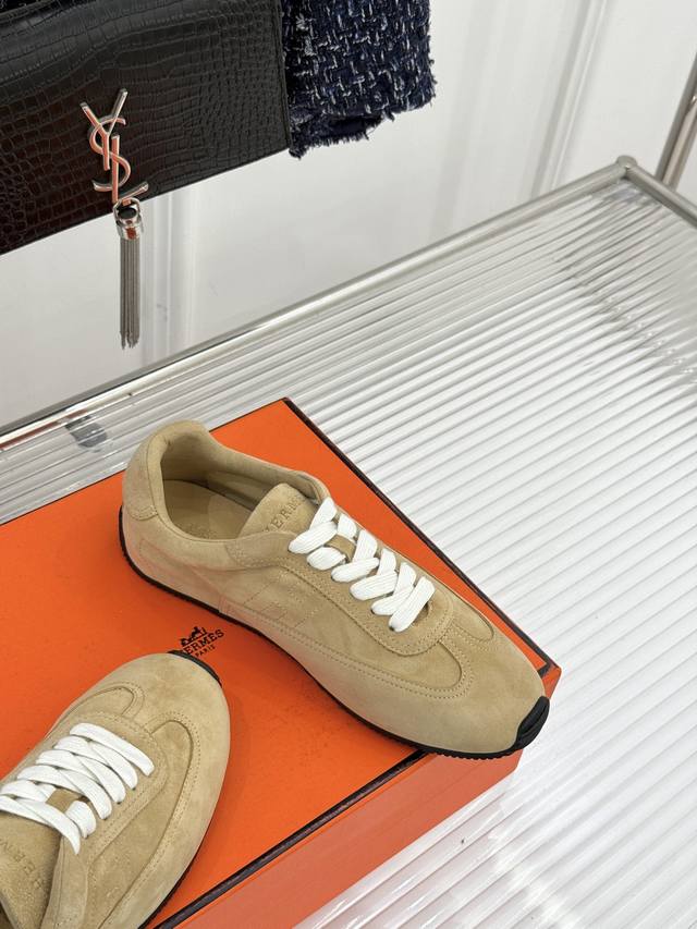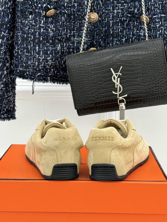 New Hermes Lace-up Running Casual German Training Shoes Ddd Classic sporty style + British style color blocking design, classic and timeless! Original mold last, perfect 1:1 shape, imported calfskin presents exquisite texture! Custom-made A-grade high-density private mold outsole, luxurious packaging! Ddd Outer Material: Original custom-made cow suede Ddd Lining: Original custom-made sheepskin lining insole Ddd Outsole: Original mold TPU outsole Ddd Sizes: 35-40 40.41 custom-made] DDD