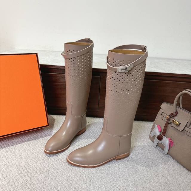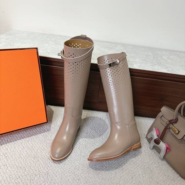 Perforated panel, factory price. Hermes Jumping boots, stylish and versatile classic combat boots, super comfortable, every detail is perfect. Original Swift calfskin suede, original 1:1 private mold, pure steel Kelly hardware buckles, original Italian genuine leather combination outsole. Size: 35~41, 40, 41, 42. Custom orders, no returns or exchanges.