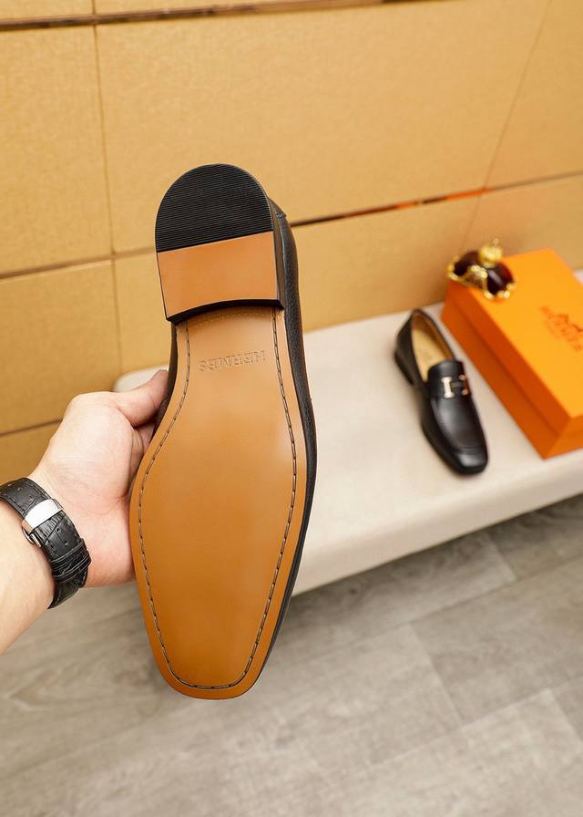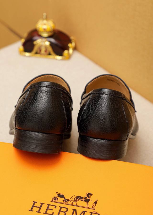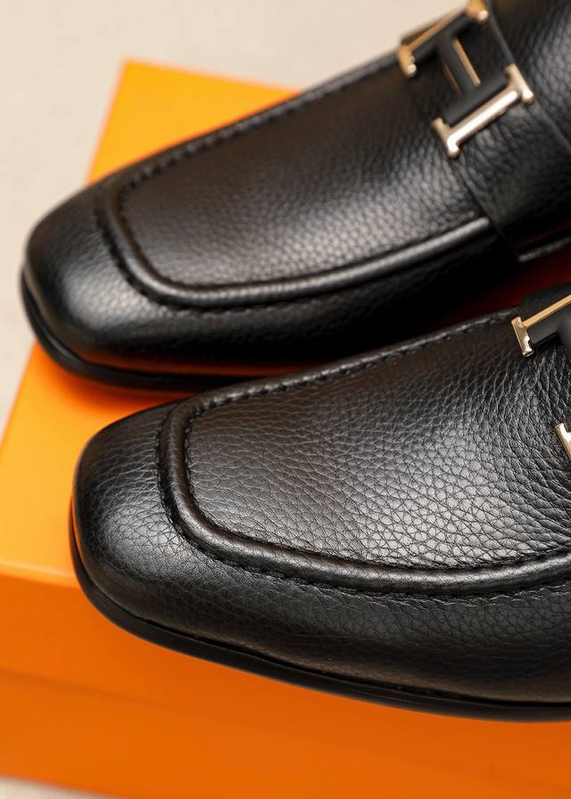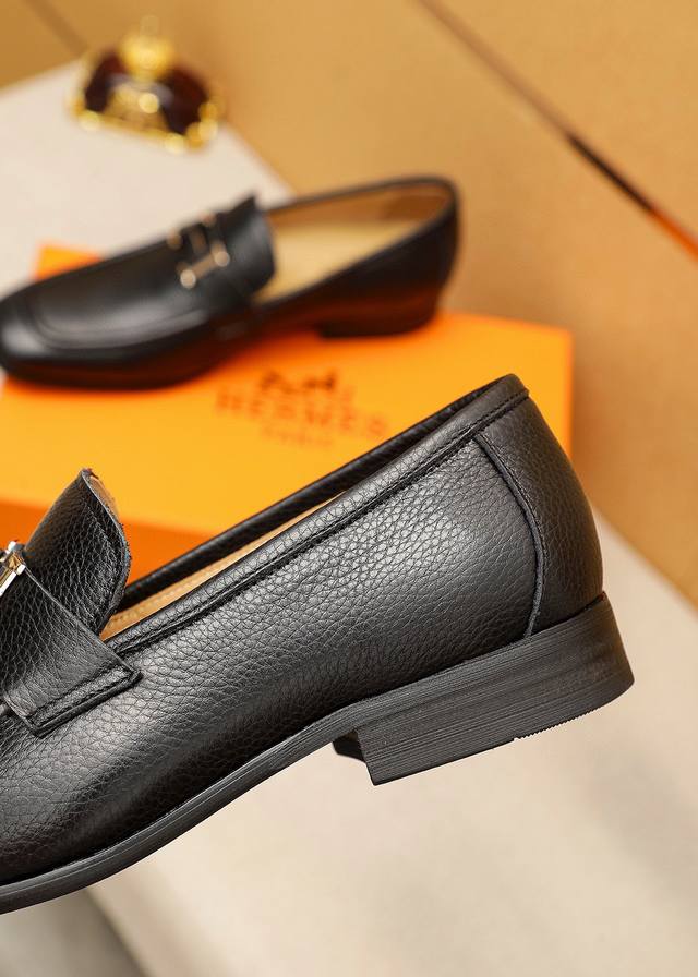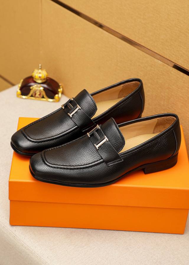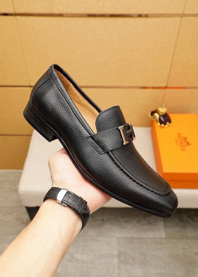 Product Trademark: Hermes Casual Leather Shoes DDD True Sizes: 38-44, 45-46 (Custom Made) DDD Product Materials: Selected imported top-grain pebbled calfskin upper + luxurious hardware buckles, imported water-dyed cowhide lining. Strong three-dimensional visual effect, combination outsole DDD Colors: 2 leather options DDD