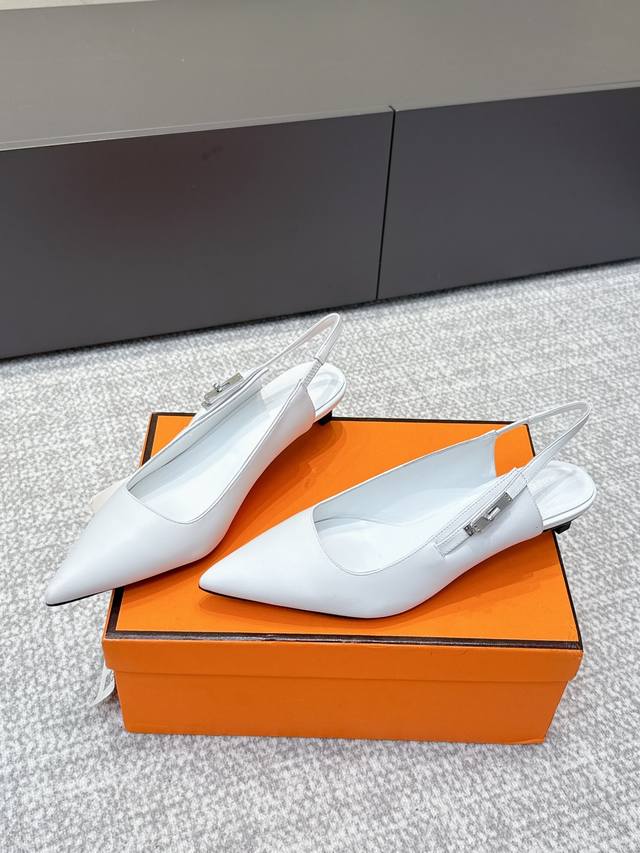Retail-grade Hermes 25Ss Spring/Summer Newest Kelly Buckle Pointed Toe Kitten Heel Fashion Shoes. Extremely difficult to find in stores. Classic pointed toe design paired with highly recognizable Hermes hardware buckle. Super versatile, stylish, and fashionable. Many celebrities and influencers recommend these shoes. A must-have for spring/summer. Casual, comfortable, and high-end. Super comfortable and doesn't constrict your feet. Upper: Imported calfskin, imported suede, mixed sheepskin lining, Italian genuine leather injection molding, steel mold outsole, Kelly buckle (not the market metal buckle). Heel height: 3cm (flat). Size: #35-41 (40, 41). Custom orders are non-refundable.