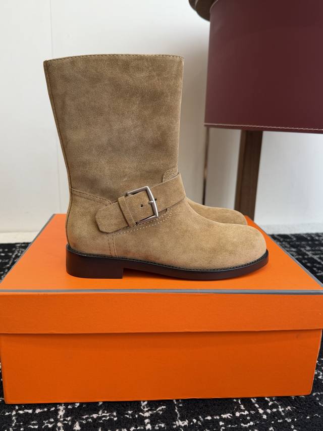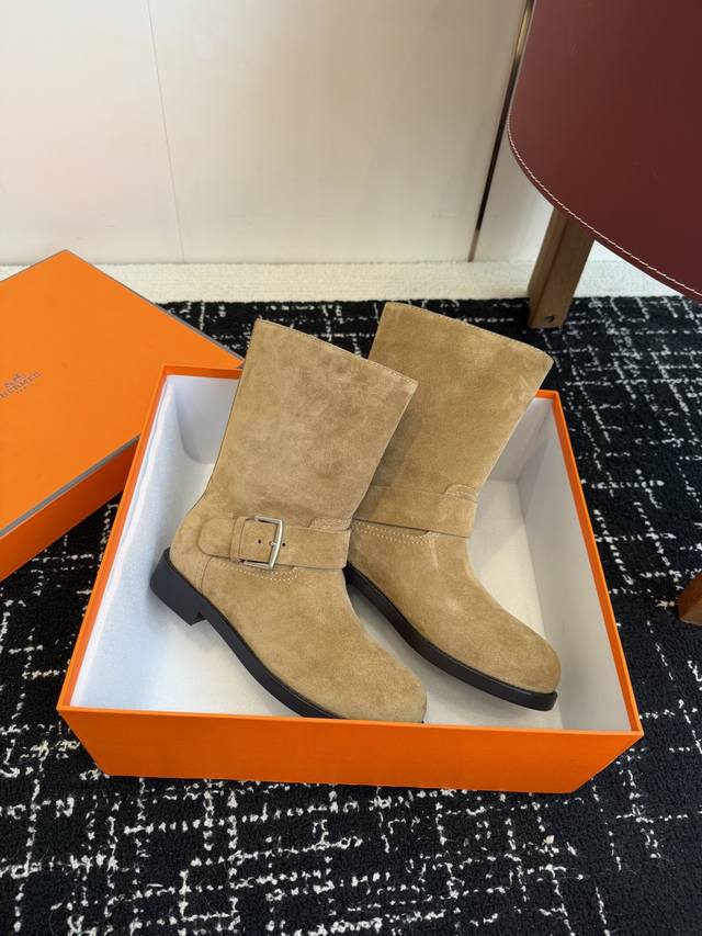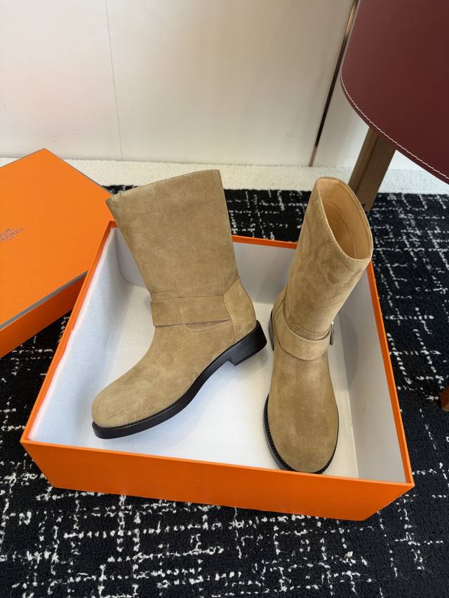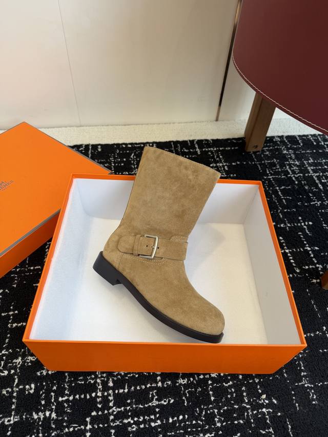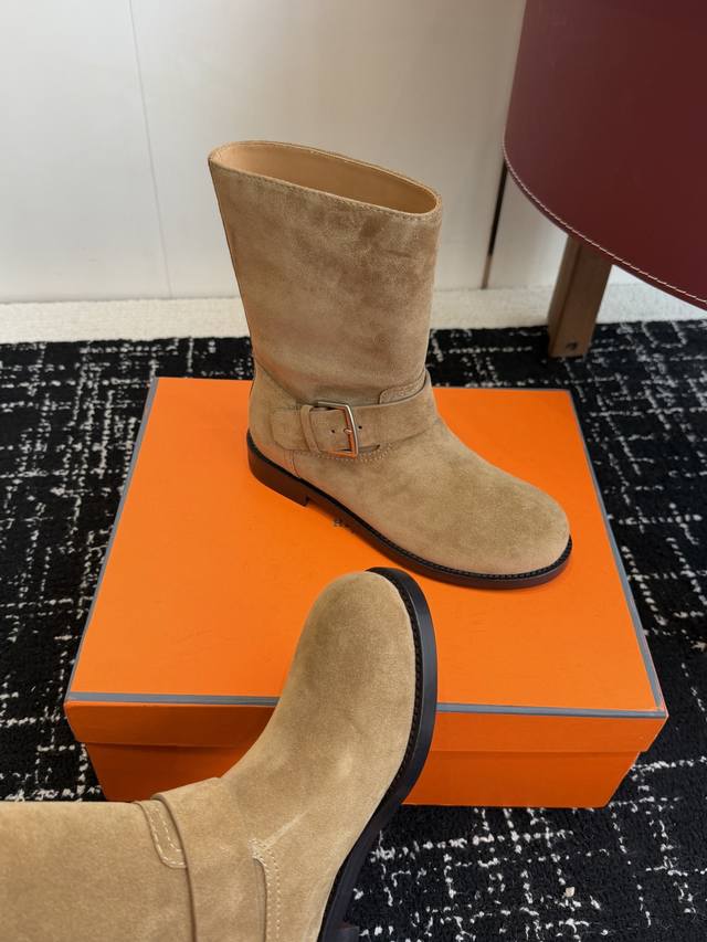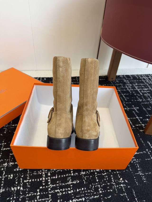 Retail-grade DDD Hermes Fall/Winter Latest Vintage Style Slip-on Ankle Boots DDD Extremely Hard to Find in Boutiques. Hermes boots are usually designed with a classic and simple style. These runway boots break away from traditional design styles. The round toe design, combined with the most popular shape, showcases a noble and elegant quality. The fashionable lines are smooth and natural, elegantly wrapping the leg lines and showing off a slender leg silhouette. They look great with both skirts and trousers. DDD Upper: Custom calfskin lining; Insole: Cowhide; Heel height: 3cm; Italian genuine leather outsole. DDD Size: 35-41; Size 40-41 is custom-made and non-refundable. DDD