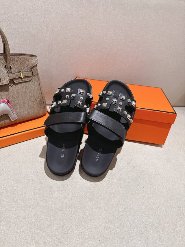 Denim Hermes H slippers Oran sandal series are fashionable and versatile, super