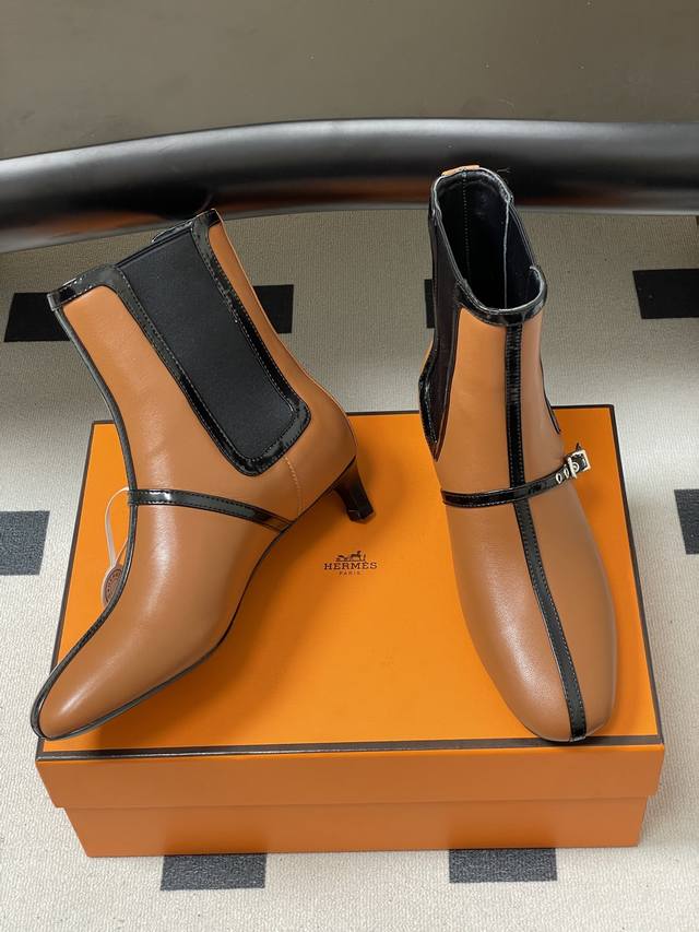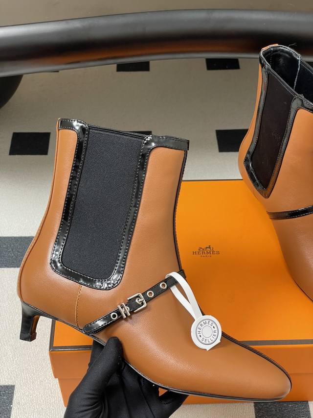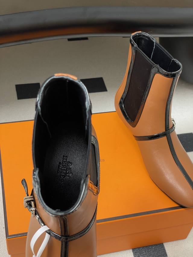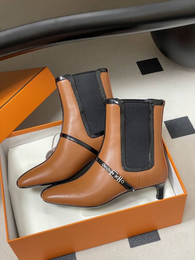 Top Quality DDD Hermes 25S Early Autumn New Lolita 40 Ankle Boots Kitten Heel Chelsea Boots DDD Toscan calfskin ankle boots, featuring the iconic 'H' buckle and contrasting piping. Creating a refined and feminine look. DDD The rounded pointed toe design is classic and stylish, visually lengthening the legs and making the feet appear more slender. A thin lace-up on the upper adds a sense of layering and design. A delicate metal buckle adorns the laces, adding a touch of highlight and fashion to the overall look. DDD This shoe has a simple yet elegant style, blending classic and modern elements. The main color makes it highly versatile, able to showcase different styles whether paired with formal or casual attire. DDD Upper: Calfskin DDD Insole: Lambskin DDD Outsole: Italian Grade A genuine leather DDD Heel height: 4cm DDD Sizes: 35-39, 40.41 Made to order, no returns or exchanges DDD