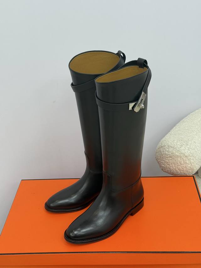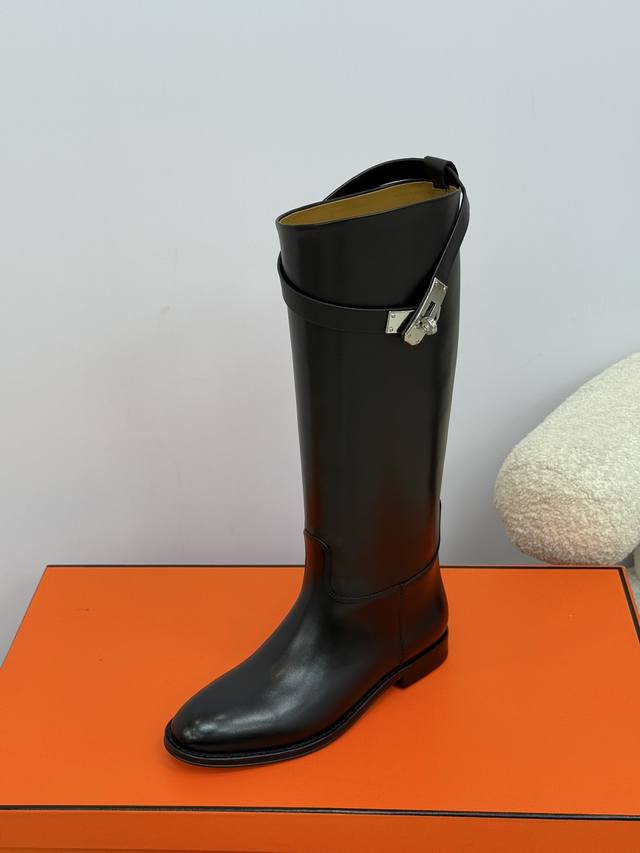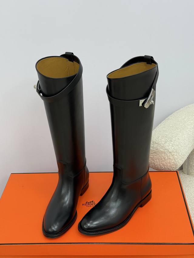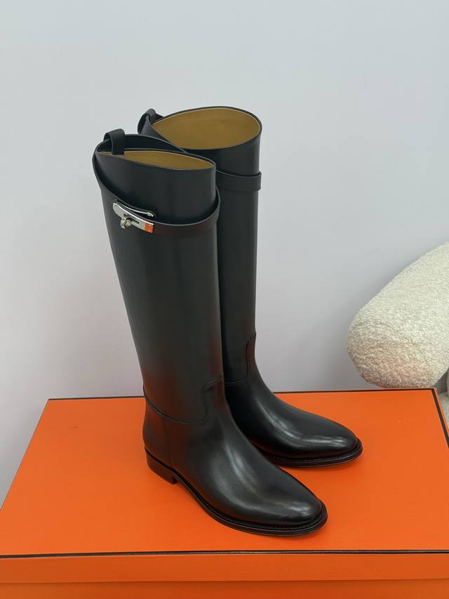 Accessories: Palladium-plated Kelly buckle on the boot shaft