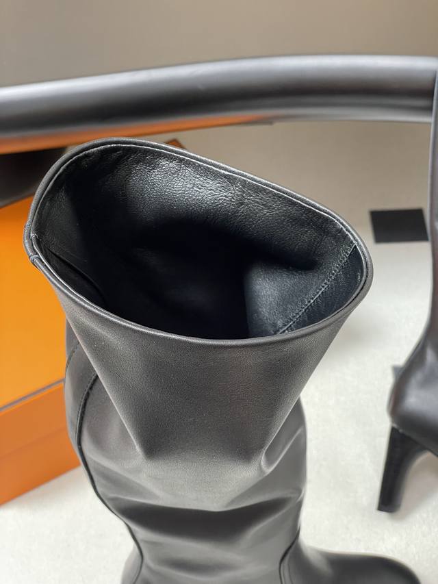Top Quality DDD Hermes Louisa Long Boots Series Geometric Mirror Heel Novel Straight High-Heeled Boots DDD Classic and Simple! The design style of these boots is usually classic and simple, emphasizing smooth lines and elegant shapes. Without excessive embellishment, they exude a noble and sophisticated quality. This minimalist beauty aligns with the brand's consistent high-end positioning, giving its products a timeless fashion sense and ensuring long-lasting popularity. DDD Presenting a classic long boot style, the smooth and natural lines elegantly wrap around the leg lines, showcasing a slender leg silhouette. They look great with both skirts and trousers. DDD Upper: Custom calfskin DDD Insole: Sheepskin DDD Sole: Italian Grade A genuine leather outsole DDD Heel height: 8.5cm DDD Sizes: 35-39 40.41 Custom-made, no returns or exchanges DDD