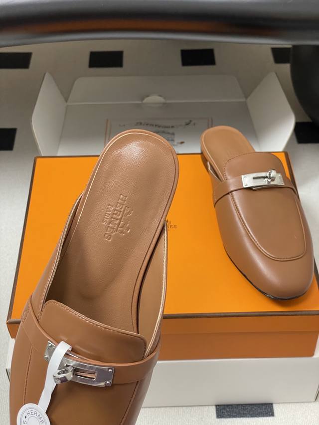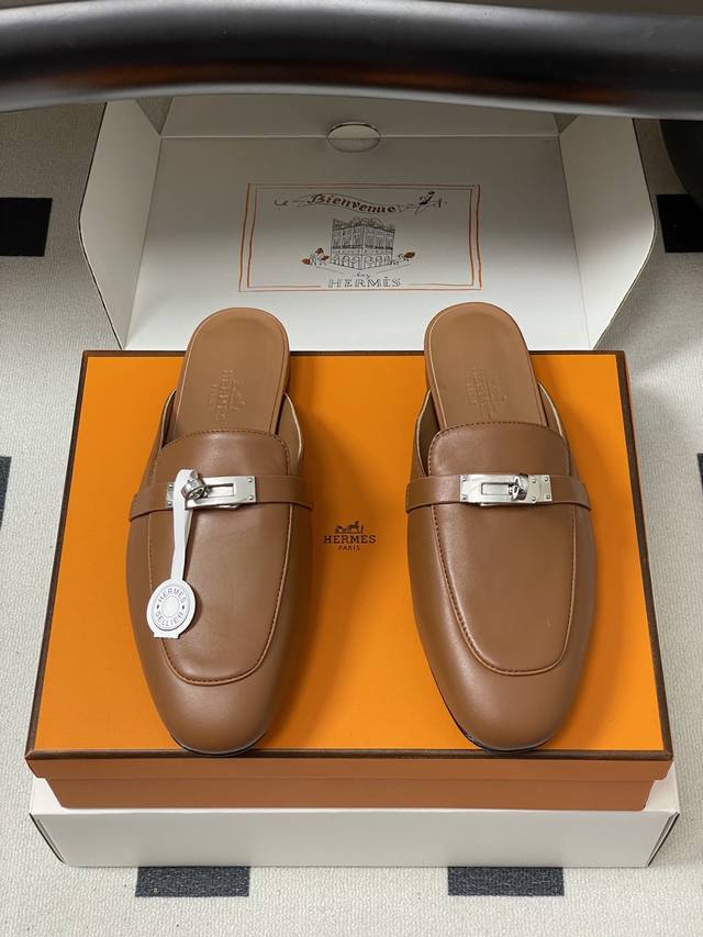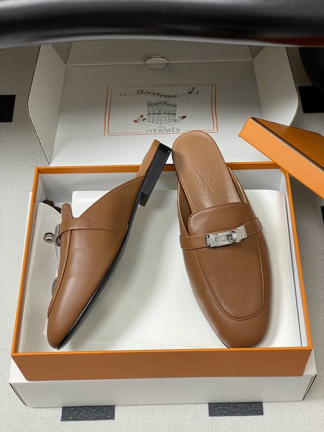 Top quality with high-end airplane box DDD Hermes 25Ss color-blocked Oz mule shoes, classic Kelly buckle closed toe half mules, classic half mules DDD Calfskin mules, with the iconic glossy black PVD coated Kelly buckle. Creating an everyday elegant style DDD Upper: Imported calfskin DDD Insole: Sheepskin DDD Outsole: Italian Grade A genuine leather DDD Sizes: 35-39 40, 41, 42 Made to order, no returns or exchanges DDD