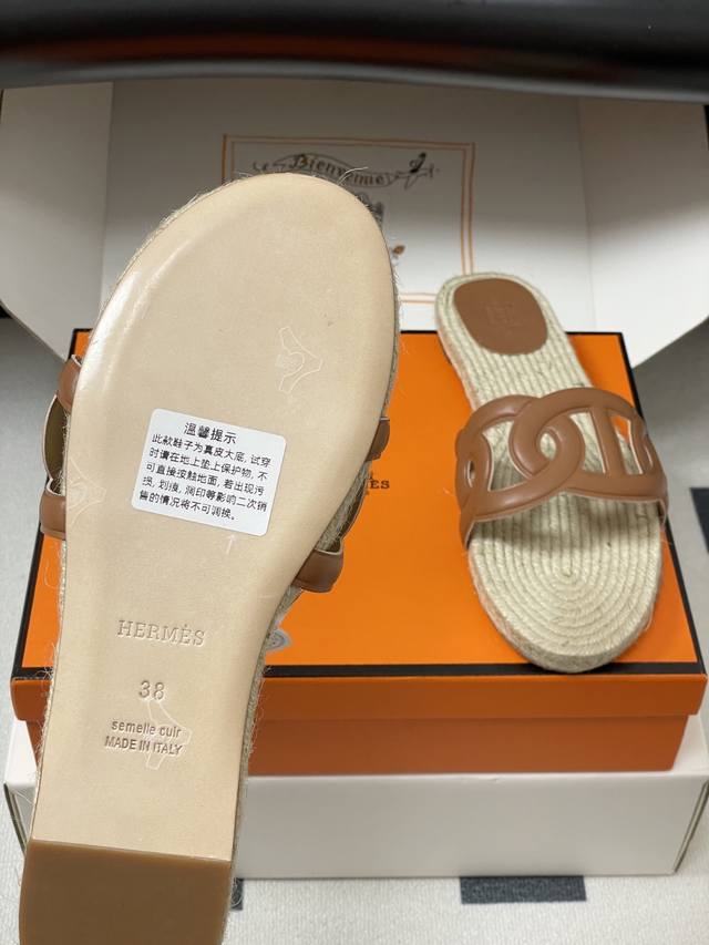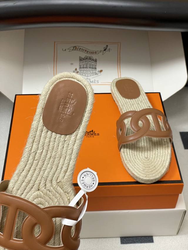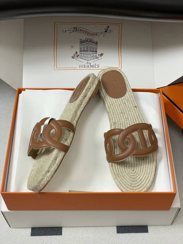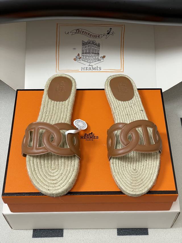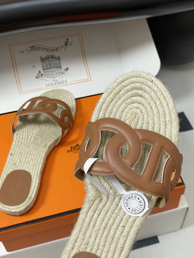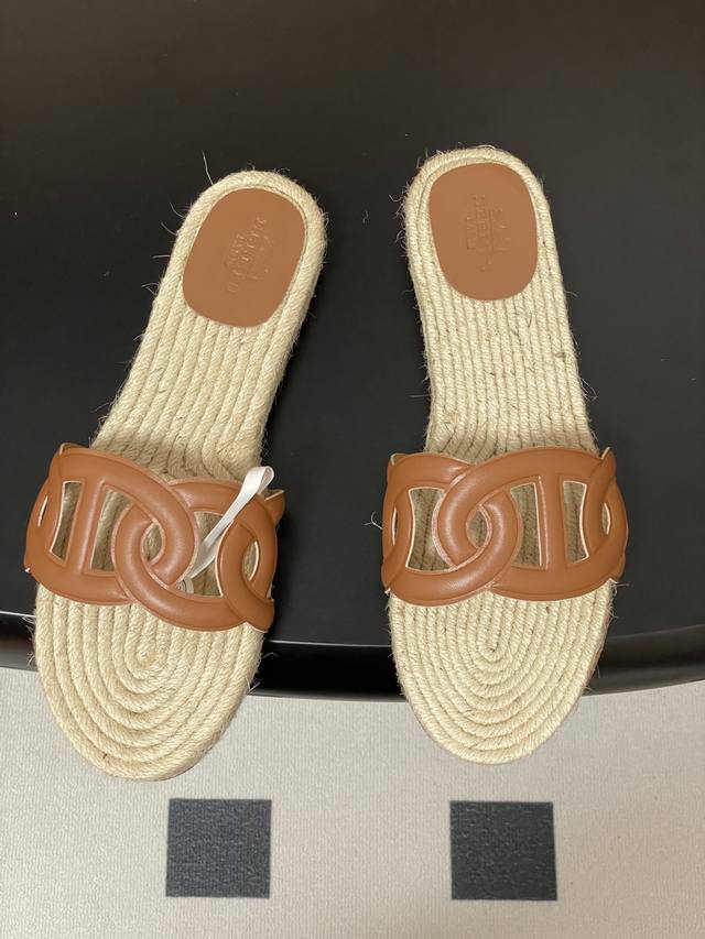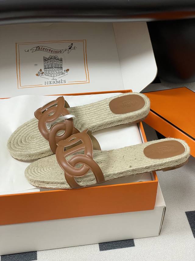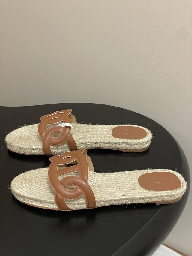 Hemp rope espadrilles, this design is commonly seen in some of Hermes' casual vacation style shoes, giving people a natural, casual and elegant feeling, while also having a certain retro charm. The espadrilles sole not only gives a refreshing visual experience, but also brings a relatively comfortable feel when worn, suitable for spring and summer wear.