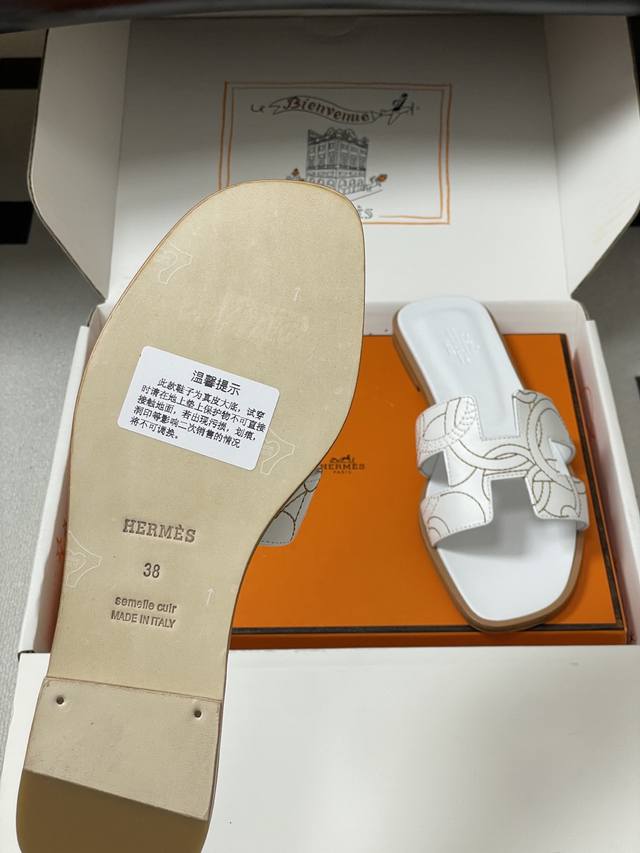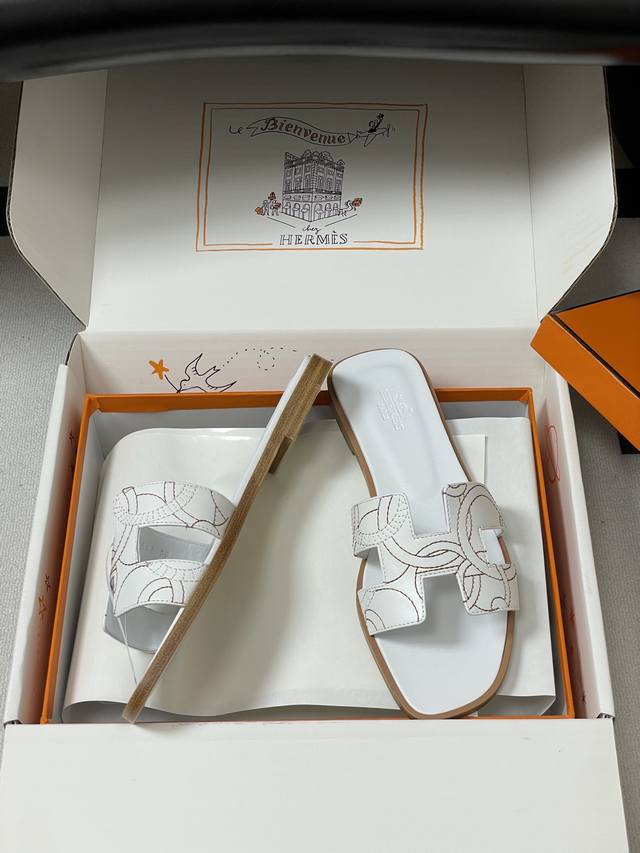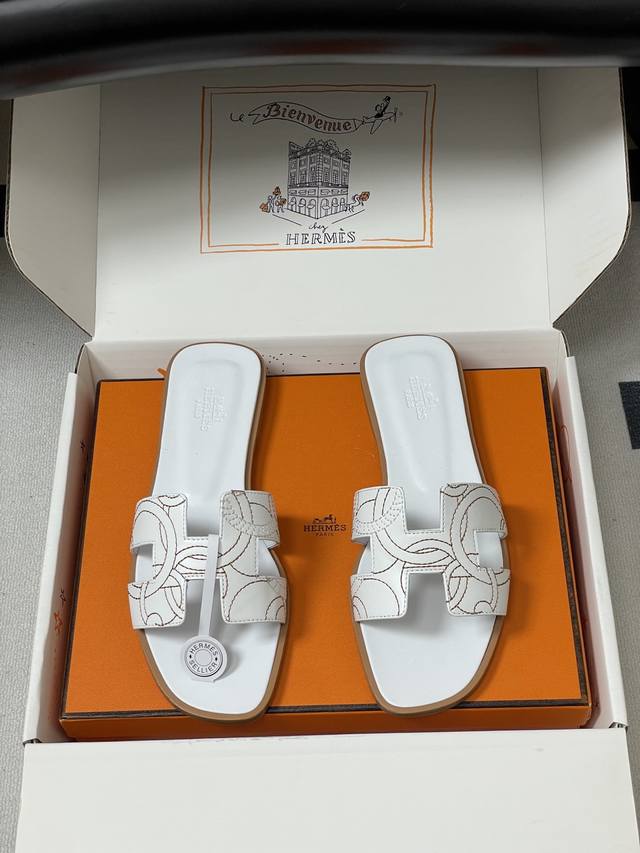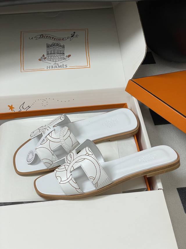 Top Quality with High-End Airplane Box DDD Hermes Oran Oasis Embroidered H-Shaped Sandals Series H Brand Embroidered H Upper Classic Flat Chunky Heel Sandals DDD Each comes with two H brand silk scarves DDD Classic H-shaped upper, "Full Equestrian Attire" embroidered calfskin high-heeled sandals, classic "H" shaped upper. Create a stylish look, a perfect companion for summer. Stylish and versatile, super comfortable, every detail is perfect. Simple and smooth design, creating a fashionable and graceful evening look DDD Upper: Custom calfskin DDD Insole: Sheepskin DDD Sole: Italian Grade A genuine leather outsole DDD Heel height: Flat 5cm DDD Sizes: 35-39 40, 41, 42 Custom-made, no returns or exchanges DDD