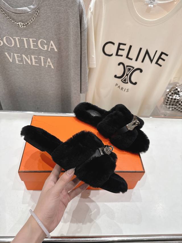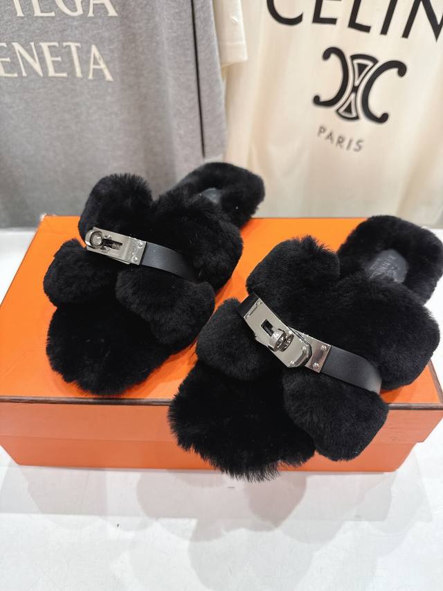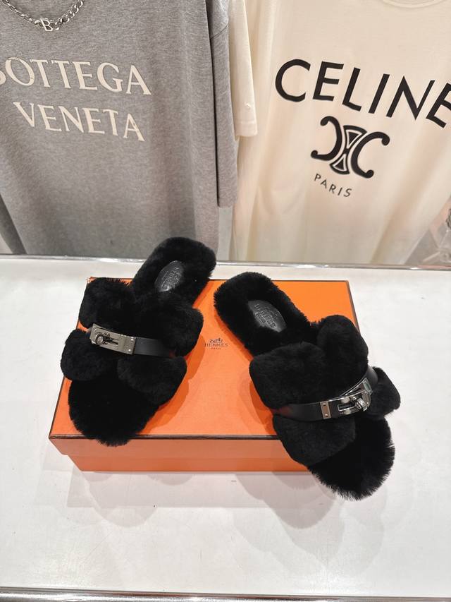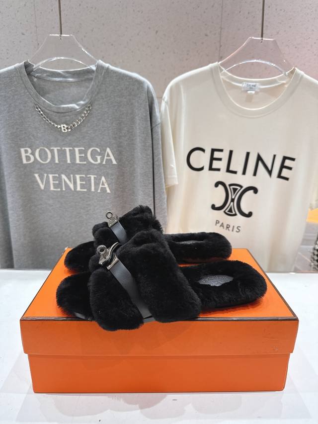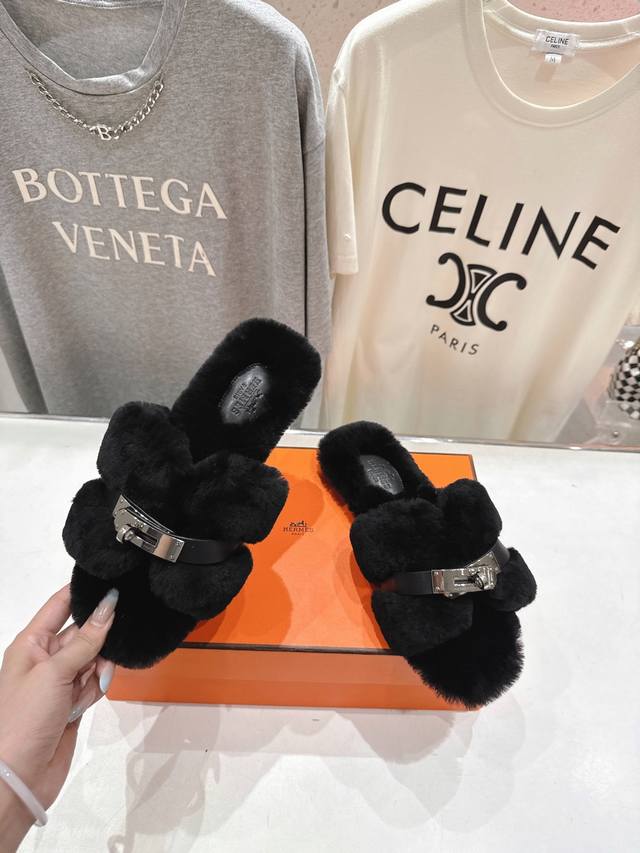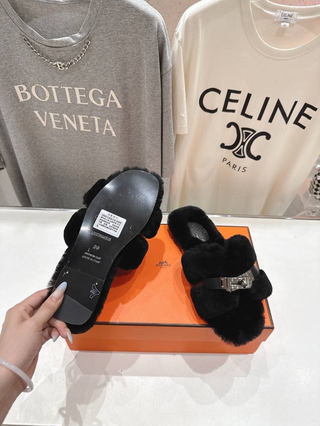 / Top-quality factory-made Hermes* F021 2025Ssh new flat fur slippers. Exceptional