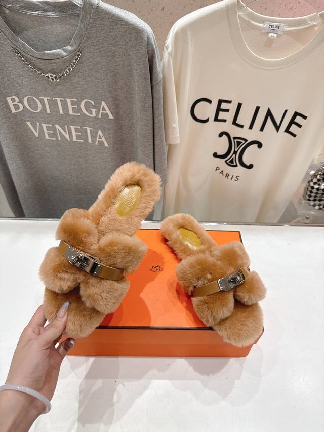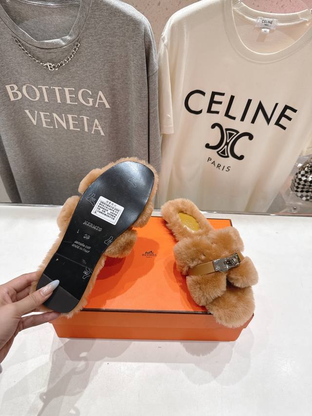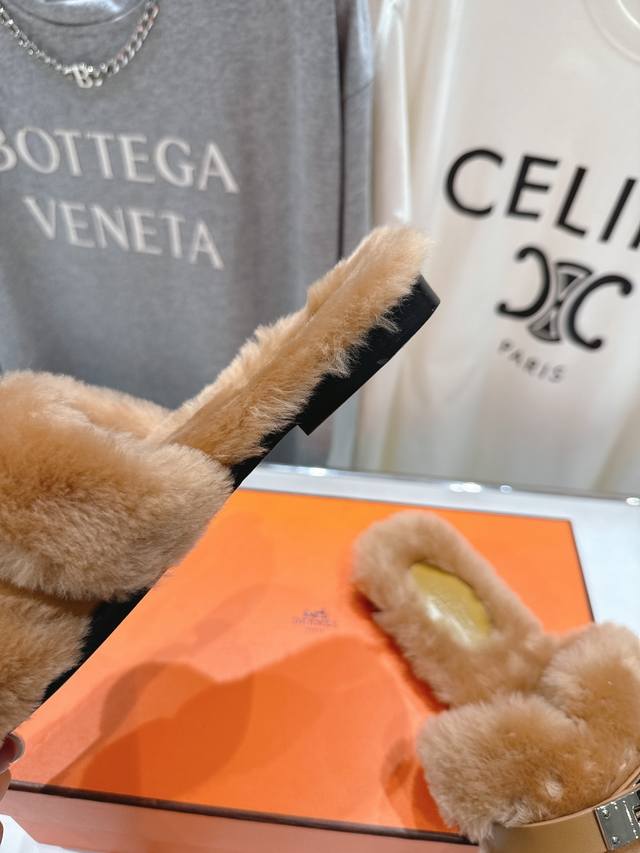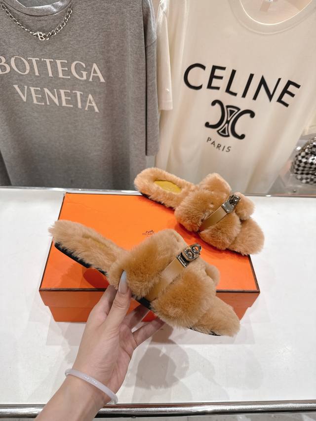 / Top-quality factory-made Hermes* F021 2025Ssh new flat fur slippers. Exceptional