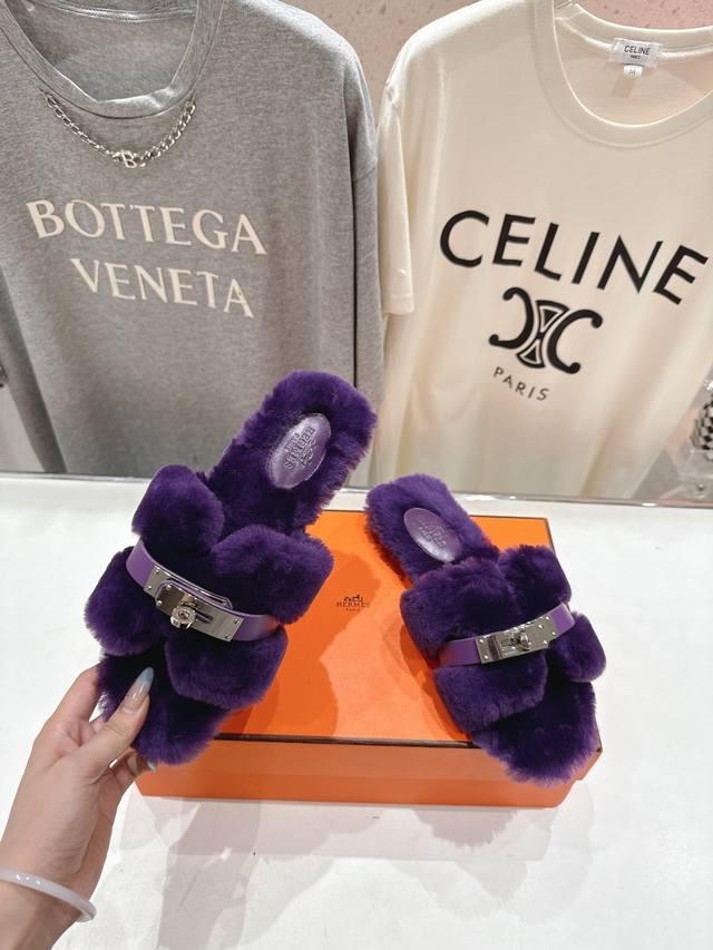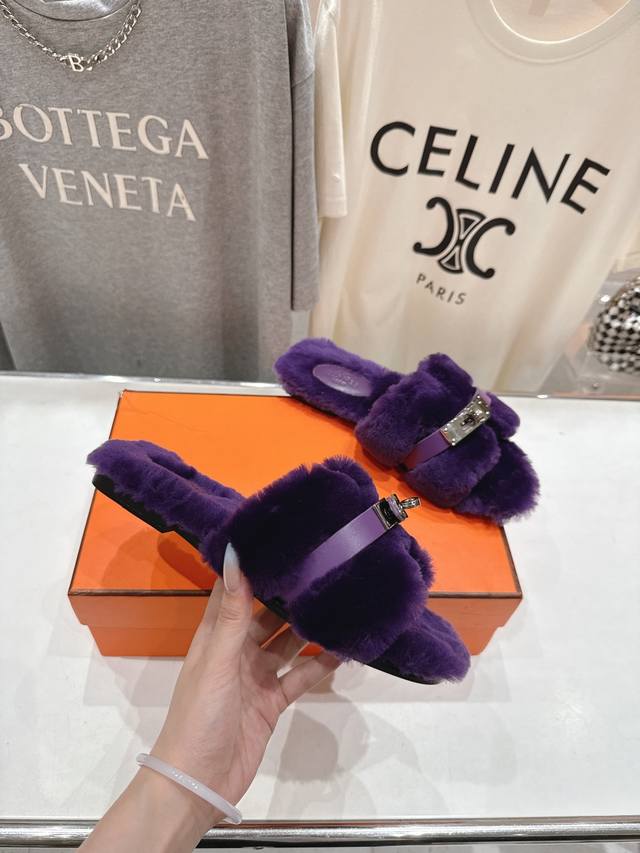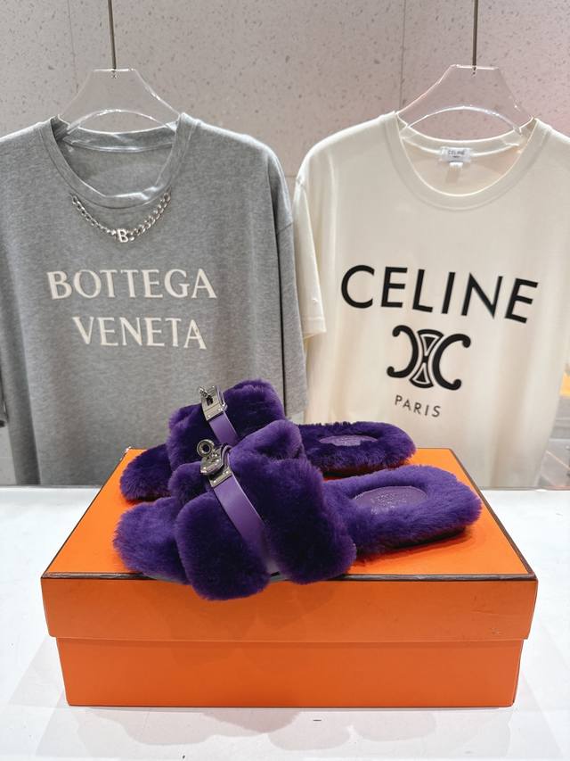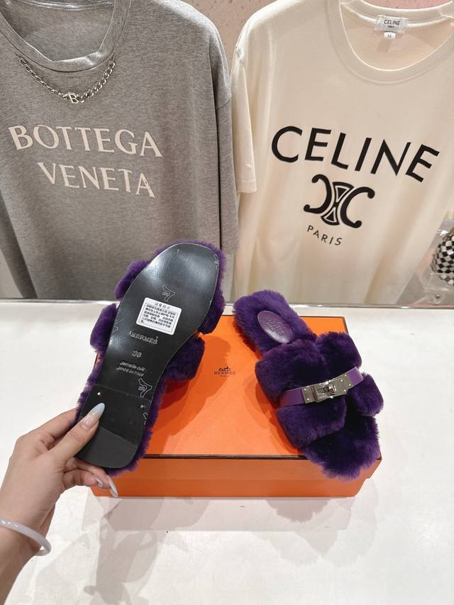 Top-quality factory-made Hermes* F021 2025Ssh new flat fur slippers. Exceptionally soft lambswool, making your feet appear brighter. Fluffy and incredibly comfortable. Wearing them barefoot or with socks creates a uniquely stylish look. A must-have for fall and winter, perfect for both outdoor and home use. Upper: Imported lambswool, soft, smooth, and stretchy, with exceptional warmth. Footbed: Imported lambswool. Outsole: Grade-A Italian leather. Different from market currency! High-end quality is a distinct difference! Sizes: 35-39, 40, 41, and 42. Made to order, no returns or exchanges.