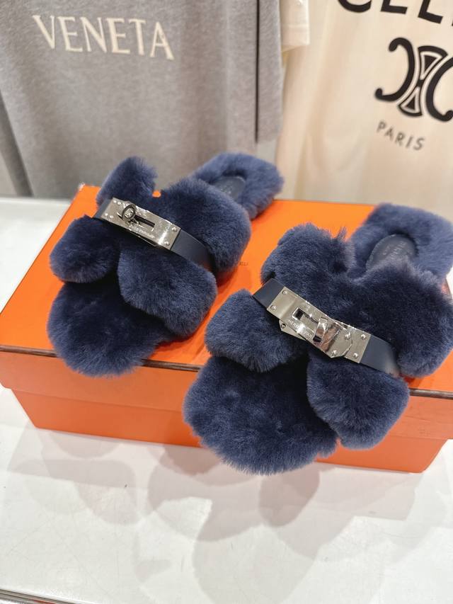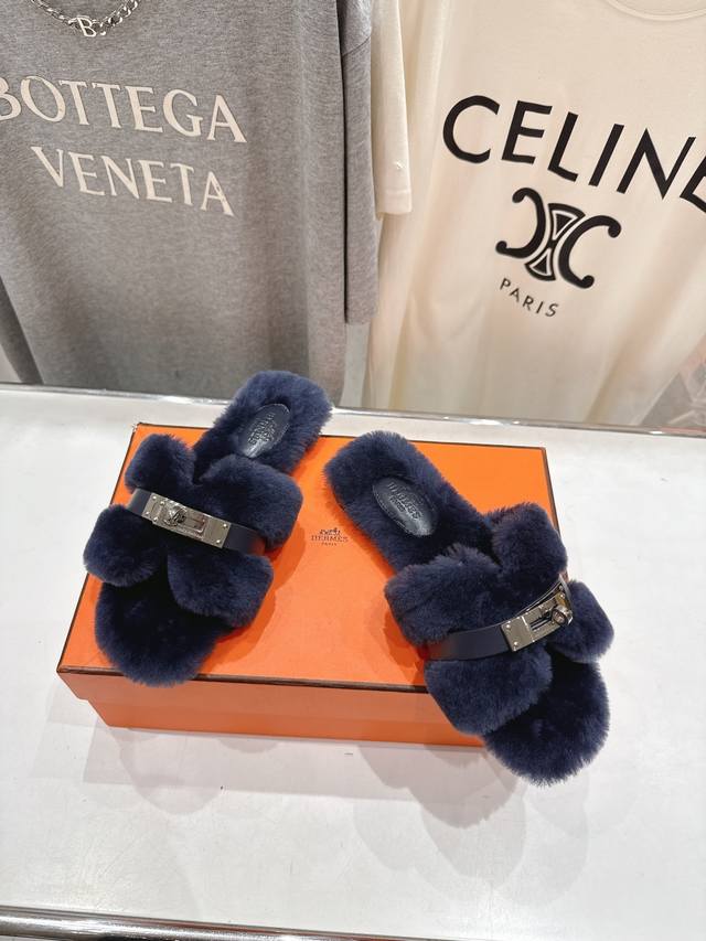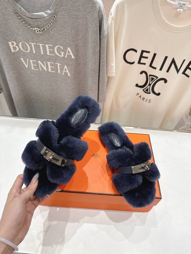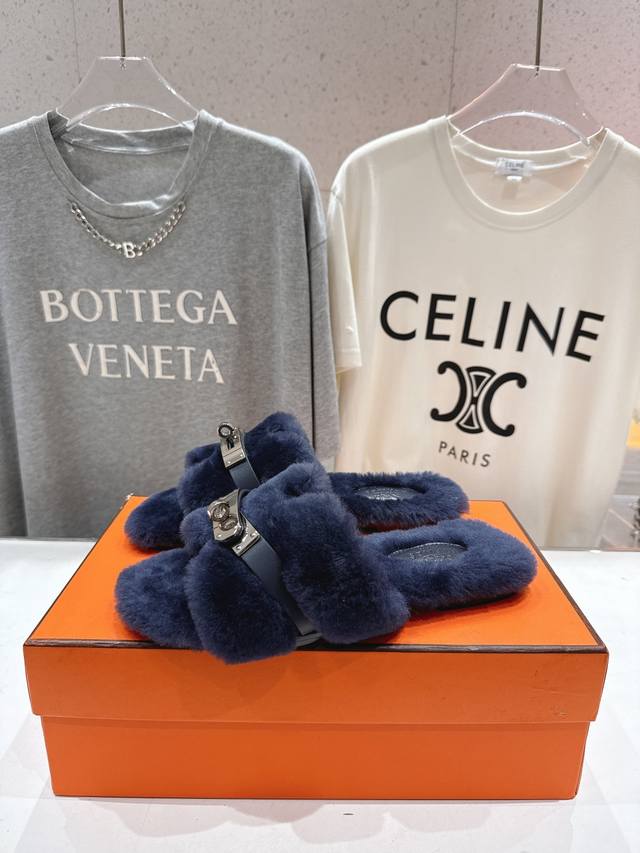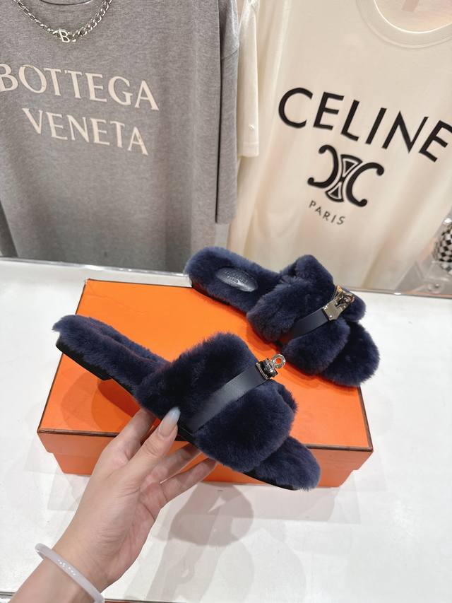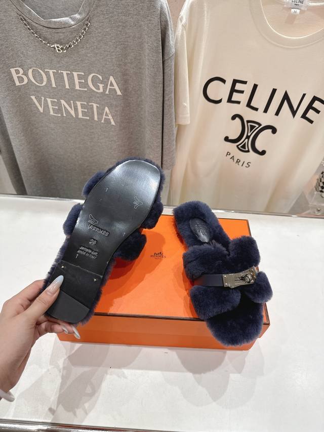 Top-quality factory-made Hermes* F021 2025Ssh new flat fur slippers. Exceptionally soft lambswool, making your feet appear brighter. Fluffy and incredibly comfortable. Wearing them barefoot or with socks creates a uniquely stylish look. A must-have for fall and winter, perfect for both outdoor and home use. Upper: Imported lambswool, soft, smooth, and stretchy, with exceptional warmth. Footbed: Imported lambswool. Outsole: Grade-A Italian leather. Different from market currency! High-end quality is a distinct difference! Sizes: 35-39, 40, 41, and 42. Made to order, no returns or exchanges.