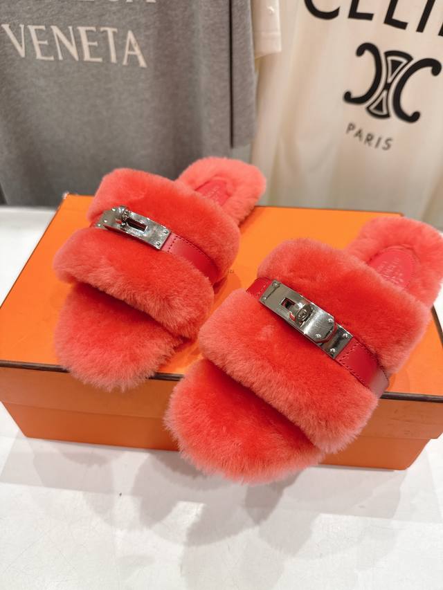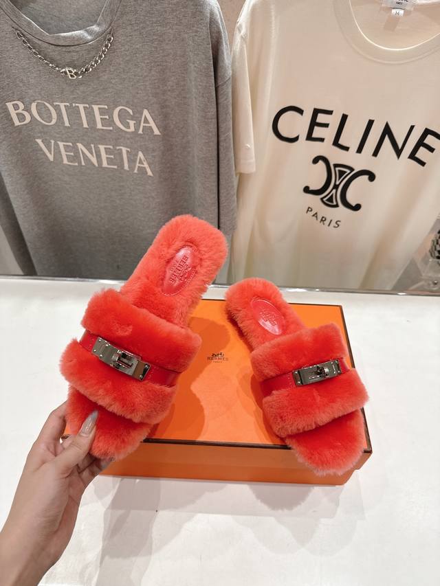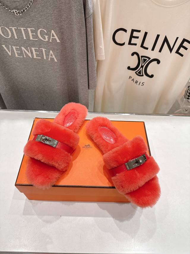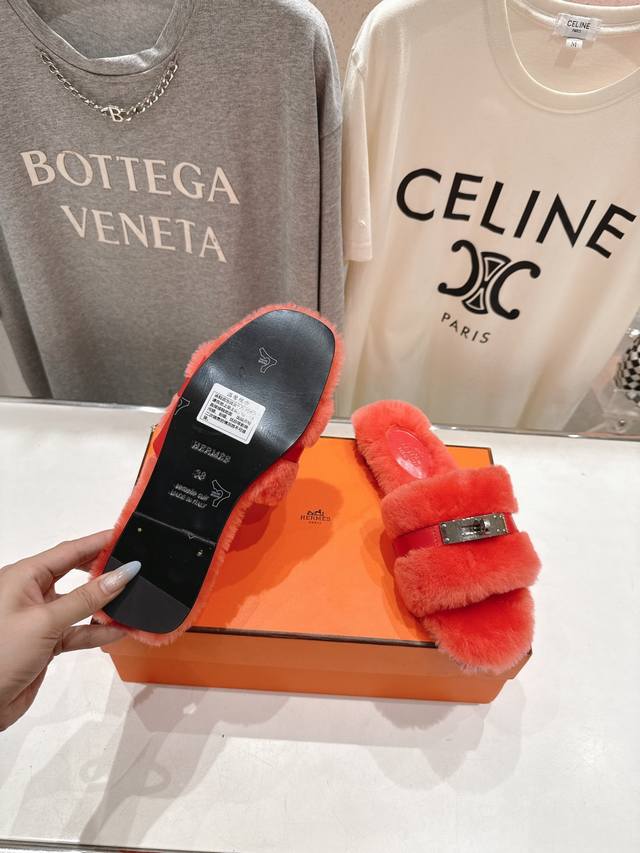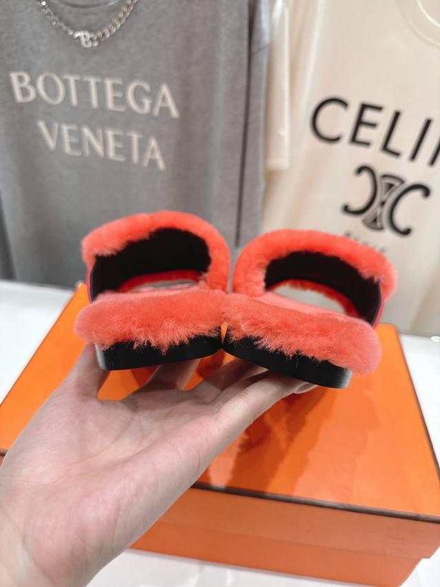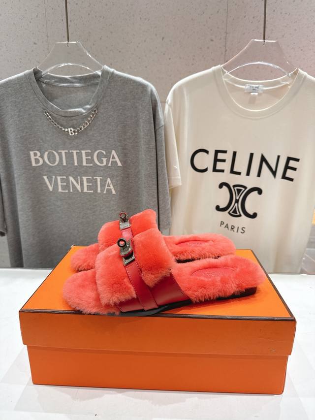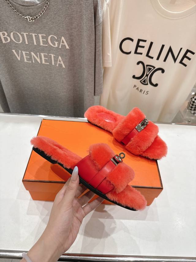 Top-quality factory-made Hermes* F021 2025Ssh new flat fur slippers. Exceptionally soft lambswool, making your feet appear brighter. Fluffy and incredibly comfortable. Wearing them barefoot or with socks creates a uniquely stylish look. A must-have for fall and winter, perfect for both outdoor and home use. Upper: Imported lambswool, soft, smooth, and stretchy, with exceptional warmth. Footbed: Imported lambswool. Outsole: Grade-A Italian leather. Different from market currency! High-end quality is a distinct difference! Sizes: 35-39, 40, 41, and 42. Made to order, no returns or exchanges.