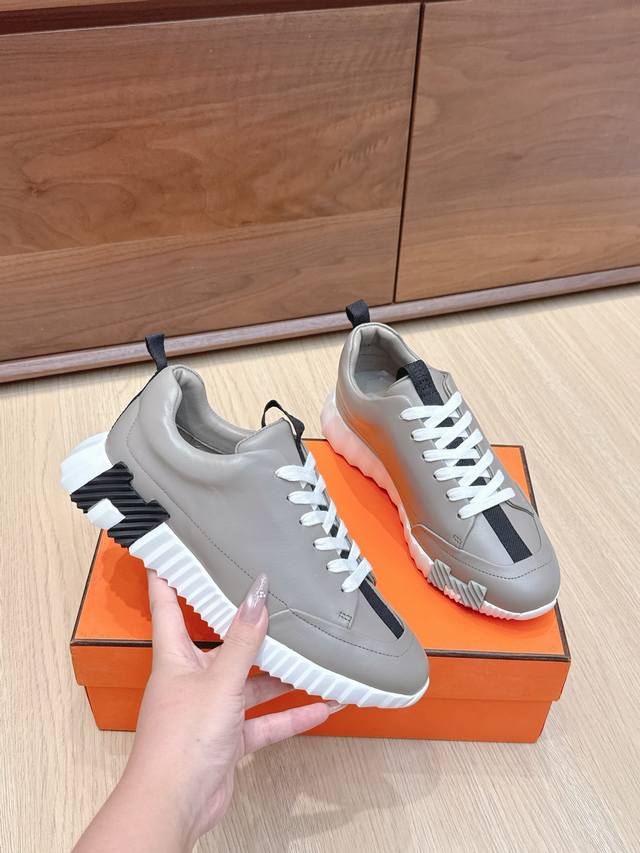 Hermes -High-end quality original casual sports shoes -Upper: suede calfskin, br