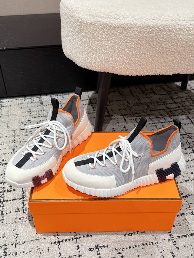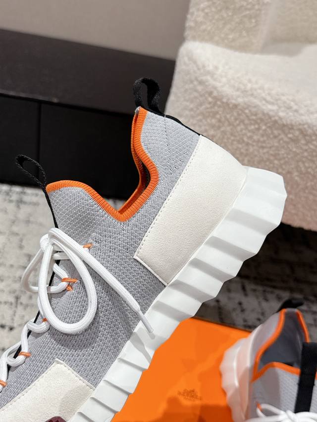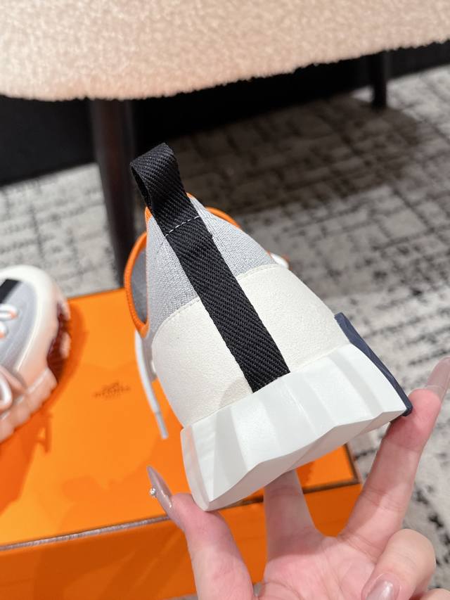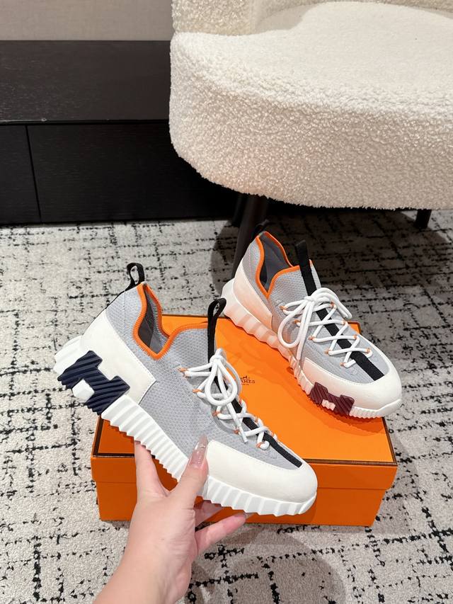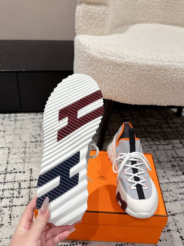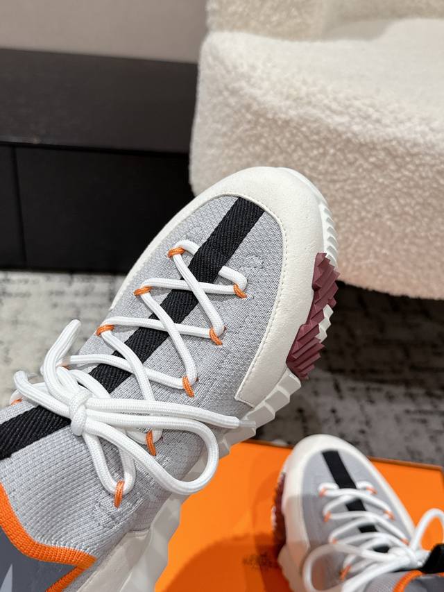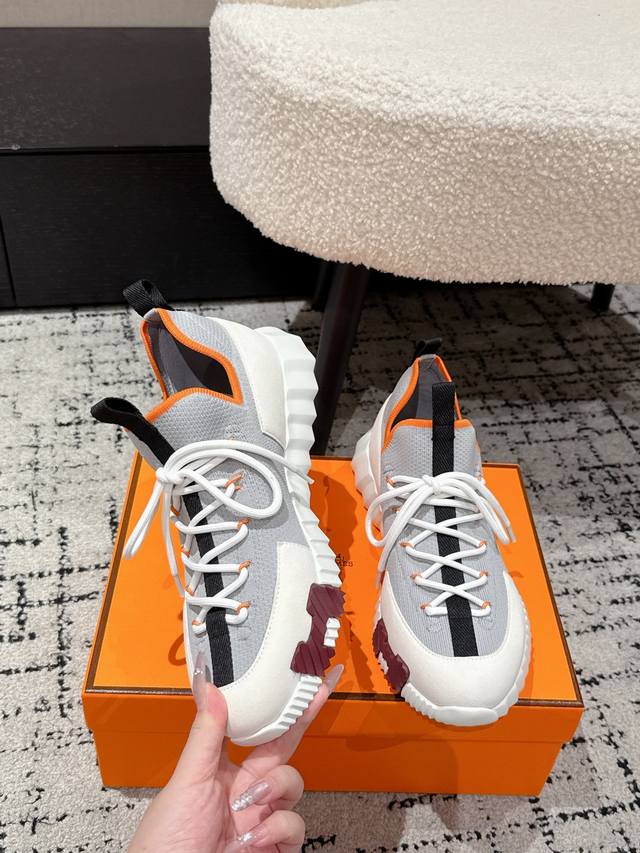 Top-tier couple's style Hermes 25 Bouncing sports casual shoes. The most comfortable Hermes shoes, without a doubt. Extremely lightweight and incredibly stylish, perfect for long walks without fatigue. The leather and knit fabric feels wonderful, very beautiful and versatile, incredibly lightweight and comfortable, perfect for both sports and casual wear. Superb walking feel! Material: Imported cowhide + knit. Lining: Imported inner lining, insole made of special silk sheepskin. Outsole: Seamless combination using Ip+Tpu multi-color lettering German technology. Size: #35-46 (Women's 40.41, Men's 45.46, custom made). Top-tier quality, same packaging as other brands .