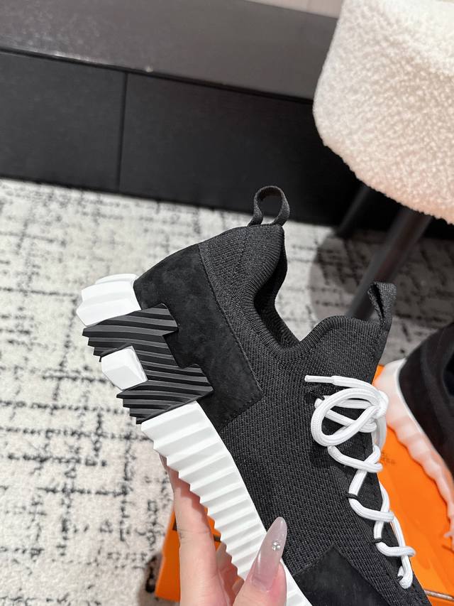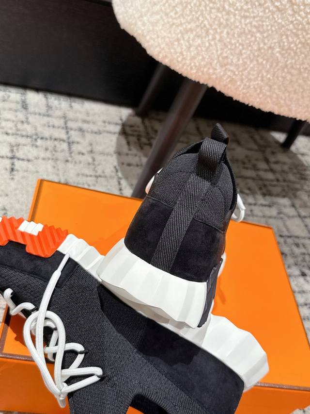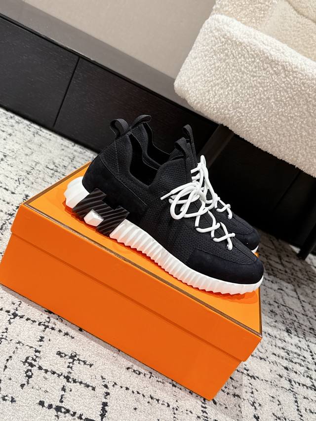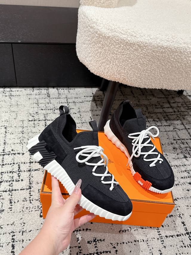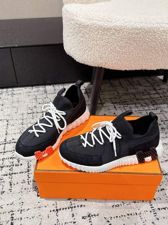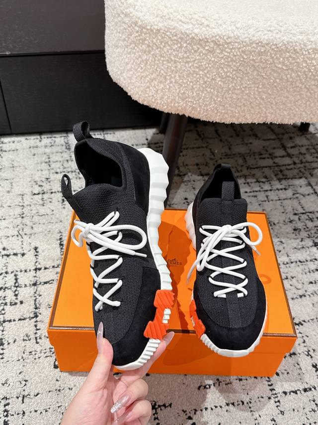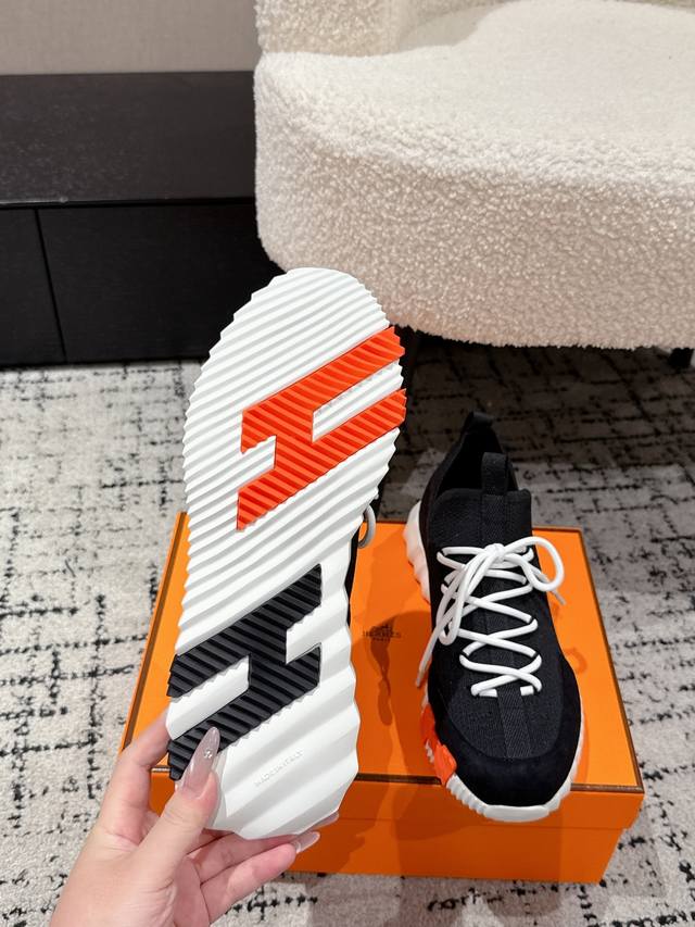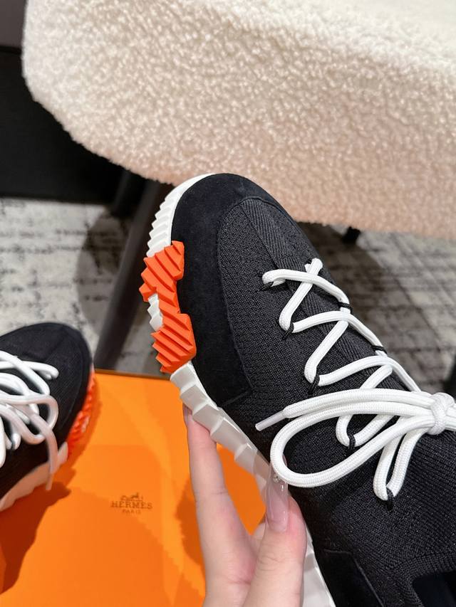 Top-tier couple's style Hermes 25 Bouncing sports casual shoes. The most comfortable Hermes shoes, without a doubt. Extremely lightweight and incredibly stylish, perfect for long walks without fatigue. The leather and knit fabric feels wonderful, very beautiful and versatile, incredibly lightweight and comfortable, perfect for both sports and casual wear. Superb walking feel! Material: Imported cowhide + knit. Lining: Imported inner lining, insole made of special silk sheepskin. Outsole: Seamless combination using Ip + TPU multi-color lettering German technology. Size: #35-46 (Women's 40.41, Men's 45.46, custom made). Top-tier quality, same packaging as other brands .