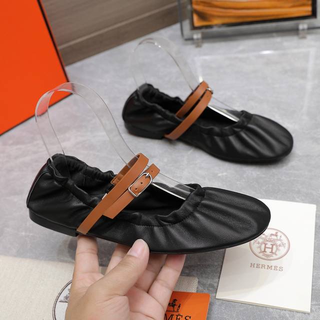 Top-tier Hermes 24S Spring/Summer Classic Ballet Flats Mary Jane Series DDD Classic retro high-end item DDD Comfortable and easy to match, looks elegant on the feet! DDD Upper made of imported calfskin DDD Lining with toe-length mixed sheepskin DDD Italian imported cowhide outsole DDD Size: 35-39 40 41 DDD Price: DDD
