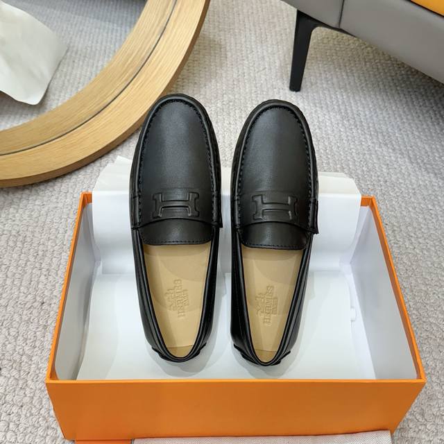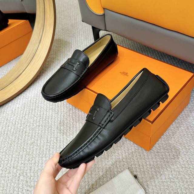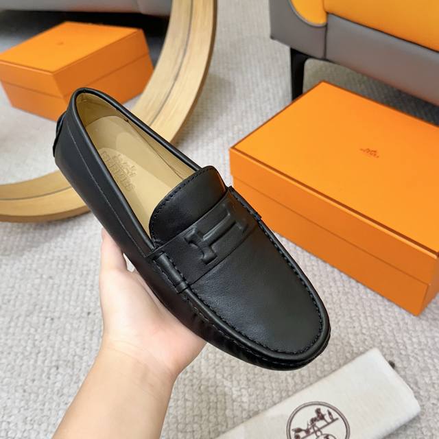 Top-tier Hermes men's 2025 HK boutique release: Italian imported cowhide leather + genuine sheepskin lining, sole: original factory-supplied sole, exclusive molded sole for super comfort, original factory order, high quality, details determine quality. Card, cloth bag, shoe guide, sizes 38-46.