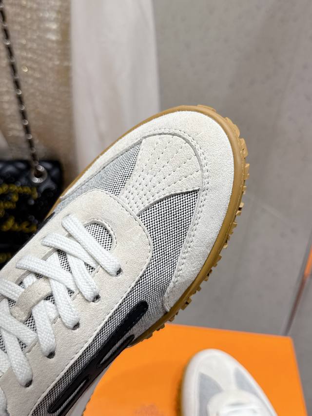 Top-tier men's size 10 Hermes casual shoes, couple style. New seasonal sneakers from Hermes. Simple leather upper, lightweight, comfortable, and breathable! Full of sporty style! Top-quality product. Sizes 35-45, couple style. Comes with a complete set of boutique-style gift box packaging!
