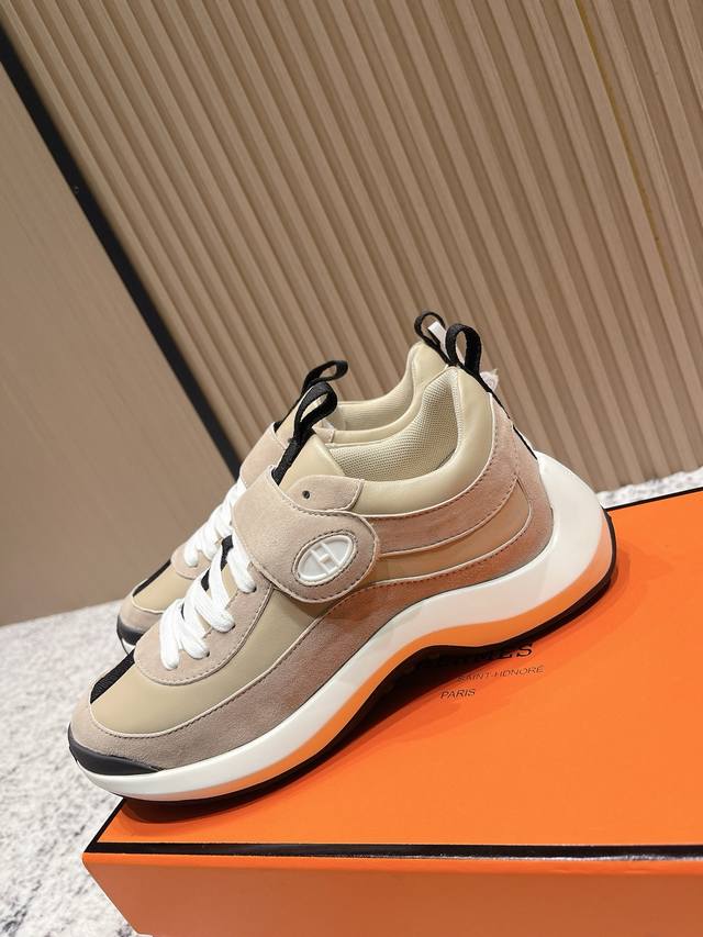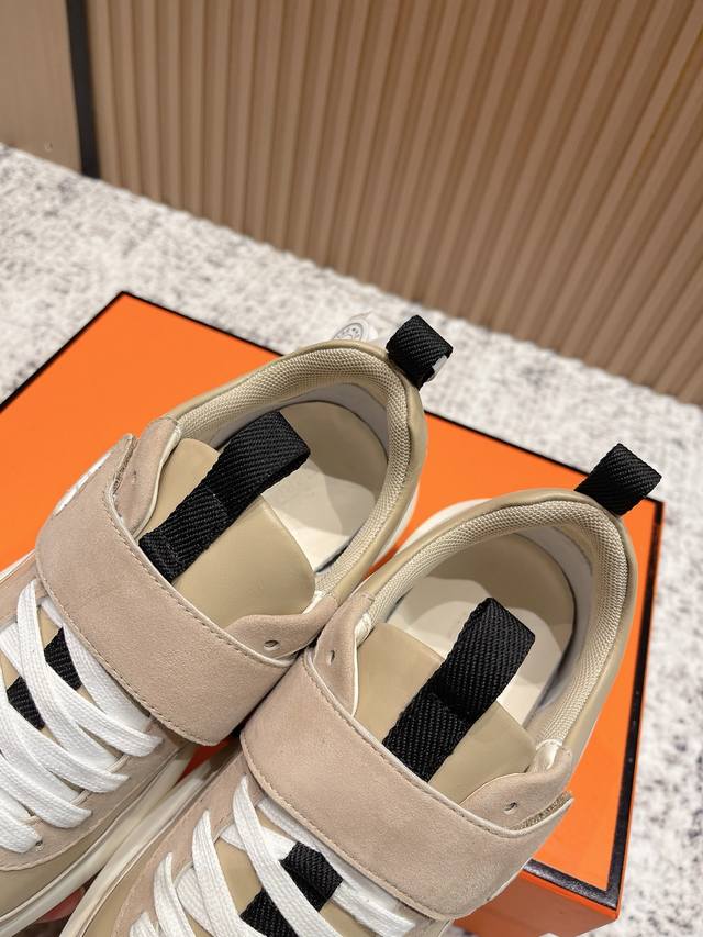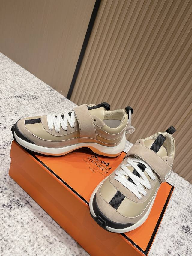 Top-tier version: Couple's style * Hermes* casual sneakers. High-quality, no worries about footwear. Loop Sneakers. Comfortable + stylish. Velcro design for easy on and off. 4cm lightweight platform sole for a slimming effect. A blessing for petite women. Looks even better on than in person. Super high-end, super comfortable, perfect for commuting. Great for everyday wear. Sizes: 35-46 (Women's 40.41, Men's 45.46). Custom made.