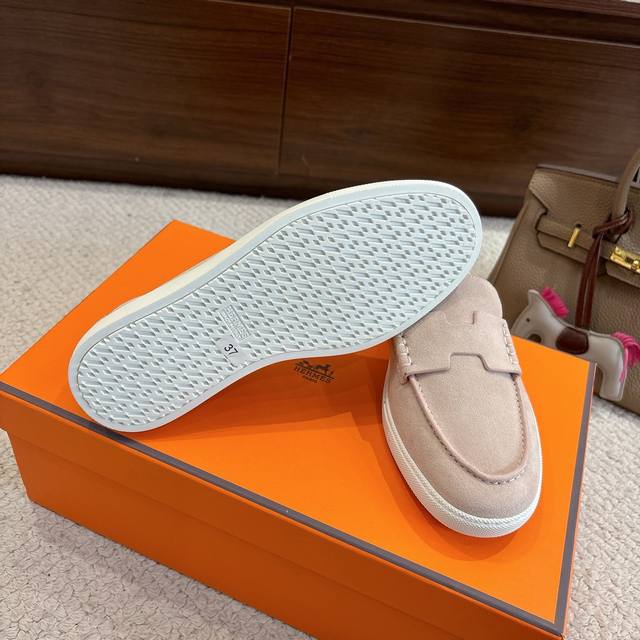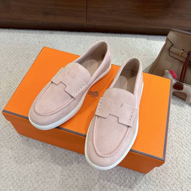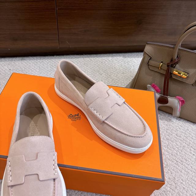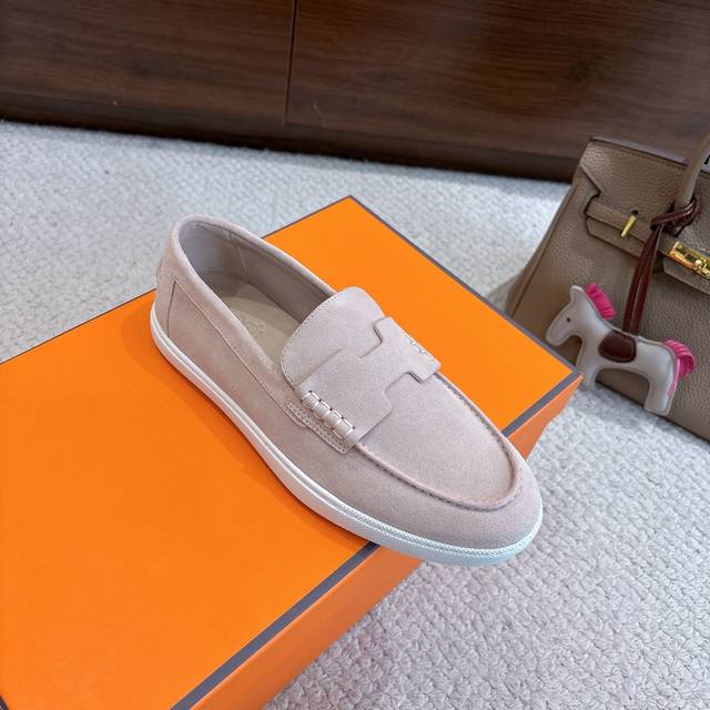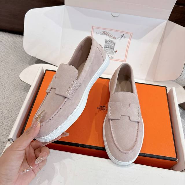 Hermes - High-end quality original slip-on casual shoes - Upper: High-gloss sued