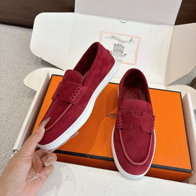 Women's and Men's 70 Hermes Sneakers Series - Stylish and Versatile, Super Comfortable to Wear. Every detail is meticulously crafted. Exclusive custom mold, pure steel strap, protective film, Kelly hardware buckles, original custom suede, calfskin lining, mixed sheepskin, exclusive custom mold, TPR outsole. Size: Women's 35-41, Men's 39-45.