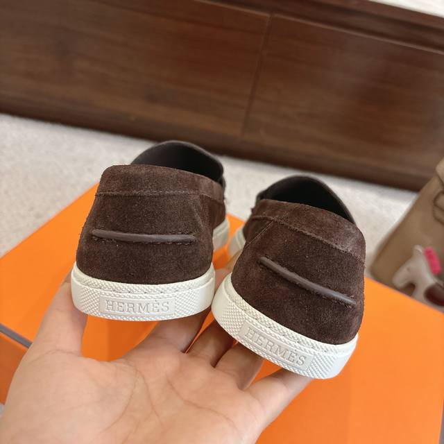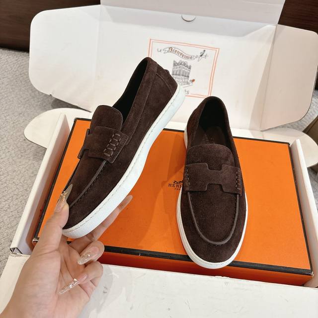 Women's and Men's 70 Hermes Sneakers Series - Stylish and Versatile, Super Comfortable to Wear. Every detail is meticulously crafted. Exclusive custom mold, pure steel strap, protective film, Kelly hardware buckles, original custom suede, calfskin lining, mixed sheepskin, exclusive custom mold, TPR outsole. Size: Women's 35-41, Men's 39-45.