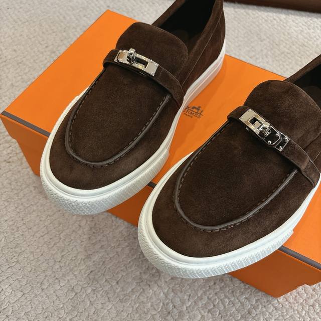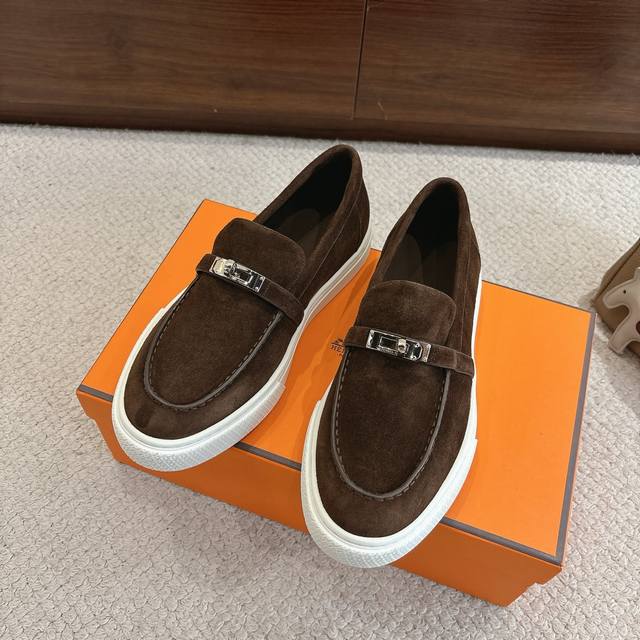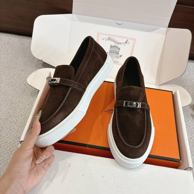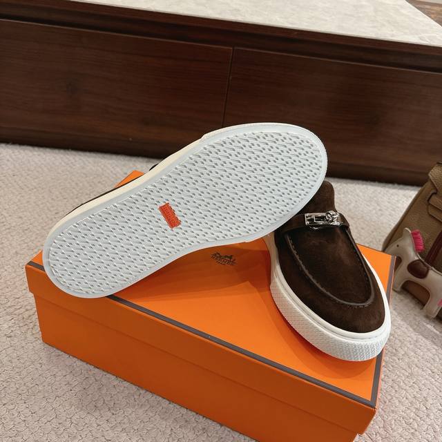 Women's and Men's 70 Hermes Sneakers - Stylish and versatile, super comfortable on the feet. Every detail is meticulously crafted. Exclusive custom mold, pure steel strap, protective film, Kelly hardware buckles, original custom suede, calfskin lining, mixed sheepskin, exclusive custom mold, TPR outsole. Size: Women's 35-41, Men's 39-45.