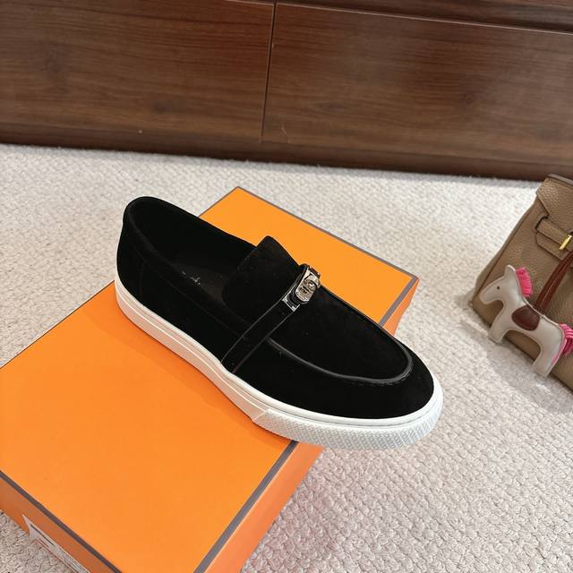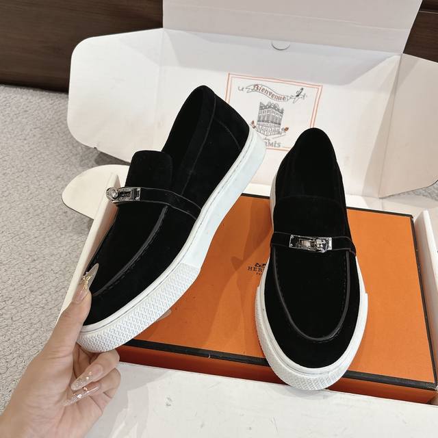 Women's and Men's 70 Hermes Sneakers - Stylish and versatile, super comfortable on the feet. Every detail is meticulously crafted. Exclusive custom mold, pure steel strap, protective film, Kelly hardware buckles, original custom suede, calfskin lining, mixed sheepskin, exclusive custom mold, TPR outsole. Size: Women's 35-41, Men's 39-45.