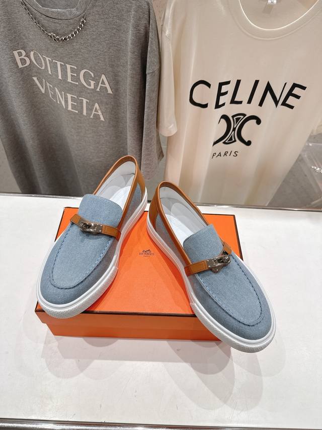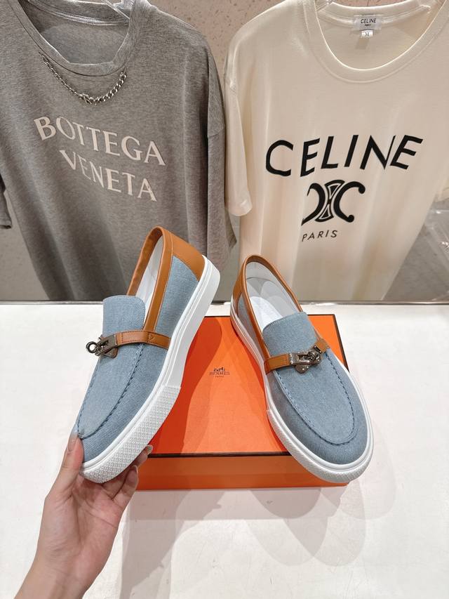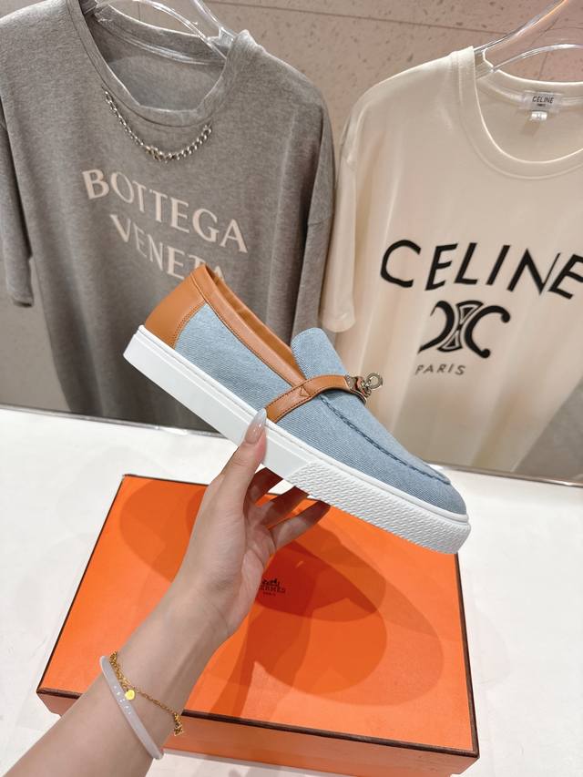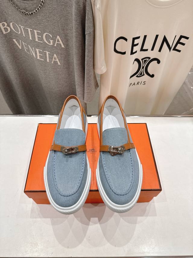 Couple's Style: H's latest classic loafers! Classic boot-last silhouette with British retro design, timeless and stylish! Original molded last, 1:1 styling, imported high-end cowhide and denim fabric for a refined feel!