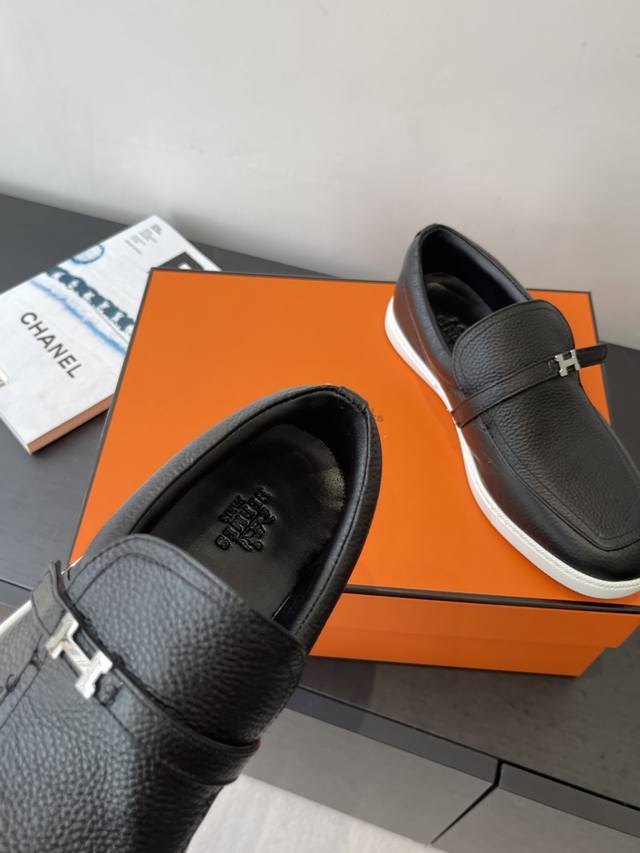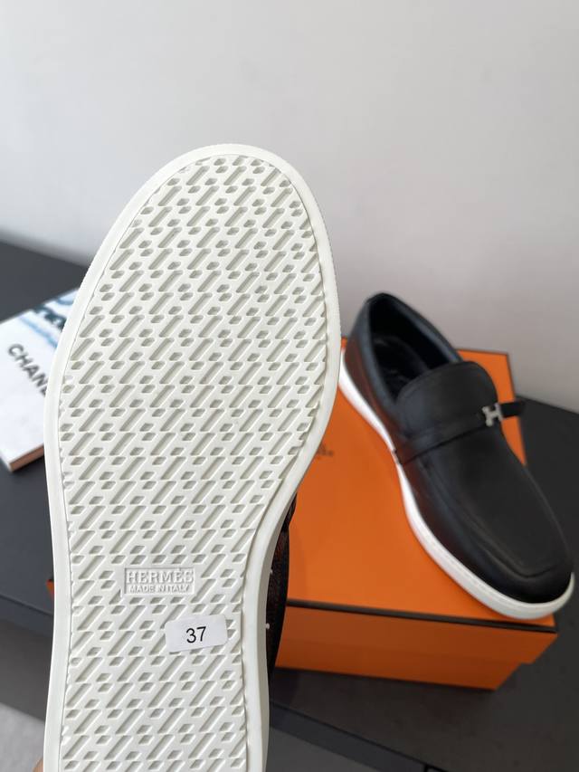 Women's and Men's Hermes 25Ss Autumn/Winter New Loafers, British Retro Design, Classic and Durable, Original Molded Last, Perfect 1:1 Shape, Made of suede calfskin, with imported sheepskin lining, original molded rubber sole. Sizes: 35-45 (Women's 40, Men's 45, custom made).