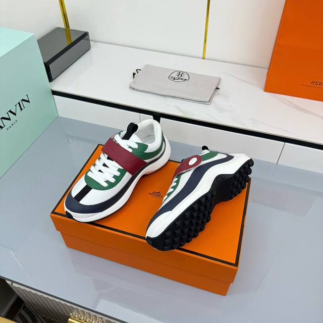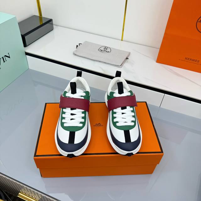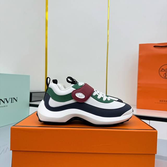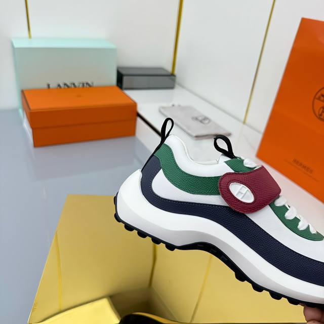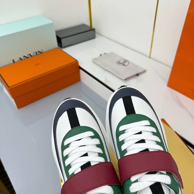 Hermes 25Ss new Loop Sneaker couple's style leather casual sneakers, original imported, top-quality materials and craftsmanship. Made with original imported calfskin, suede, parachute material, sheepskin lining, leather Velcro upper, and lightweight geometric sole. Lightweight, comfortable, soft, easy to wear, and stylish. Size: 36-45