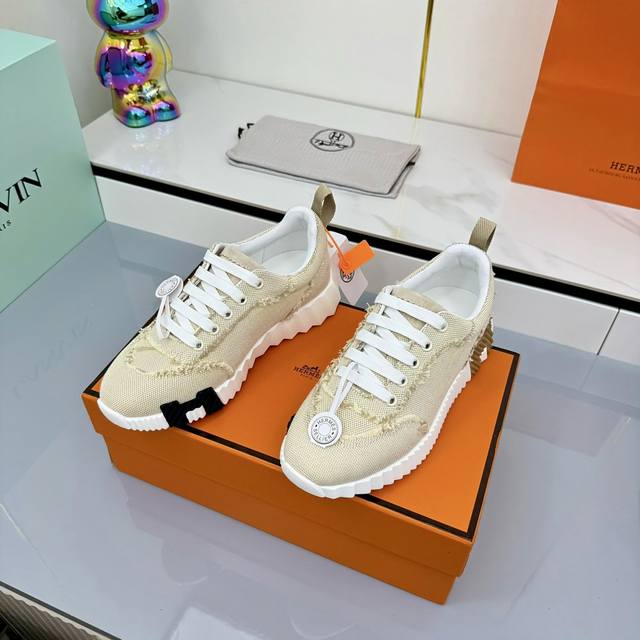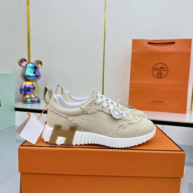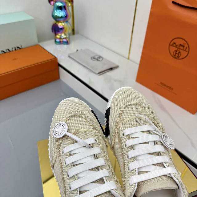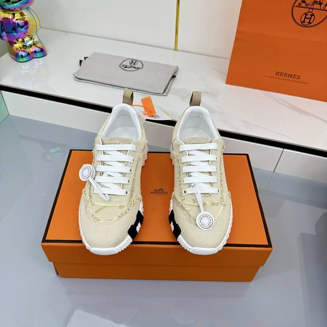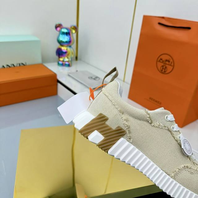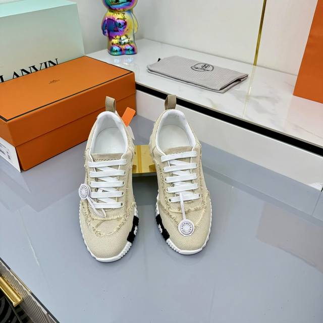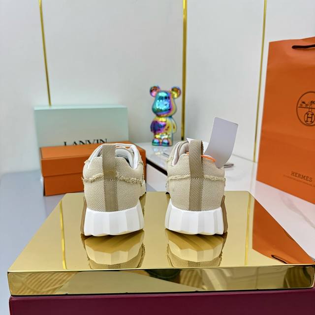 Couple casual sneakers combine high-tech canvas and suede goatskin, adorned with an exaggerated "H" letter on the rubber sole. The italic design and vibrant colors showcase vitality, continuing the brand's design inspiration. Enjoy a light and carefree stroll in the city.