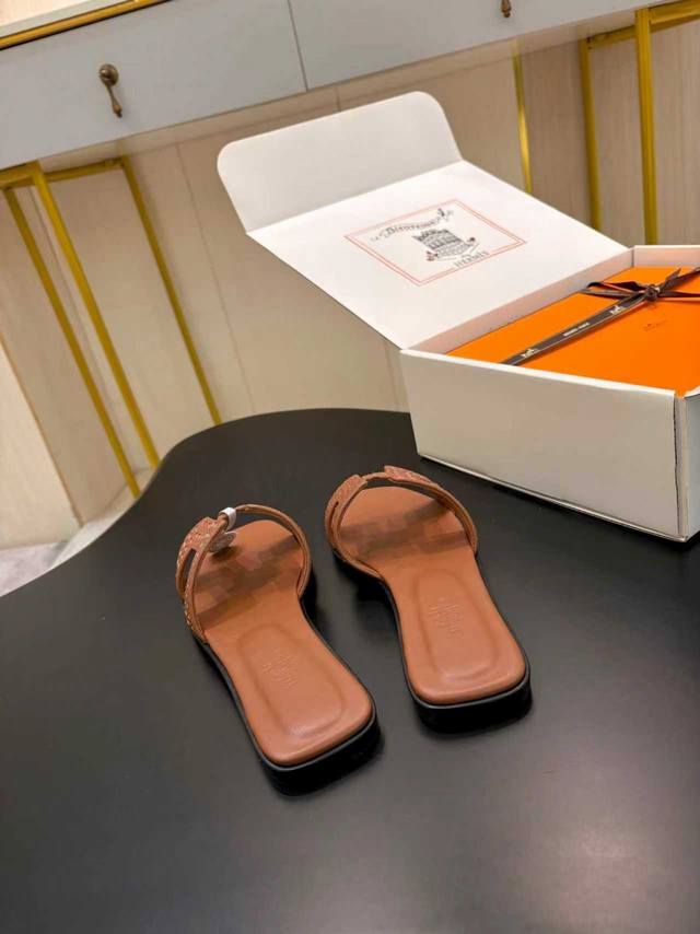 Additional 10 for the shipping box * Hermes 25 DDD 2025 Spring/Summer New Top-Tier Classic H-Shaped Oran Chunky Heel Sandals Series DDD Upper: Original Specific Cowhide DDD Lining: Imported Mixed Sheepskin DDD Outsole: Original Italian Genuine Leather Outsole DDD Heel Height: Flat 5cm DDD Shoe Sizes: 35-39 40 41 42. Custom orders are non-refundable DDD