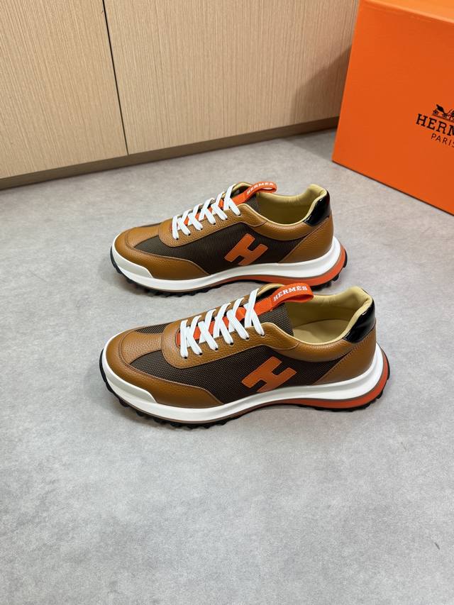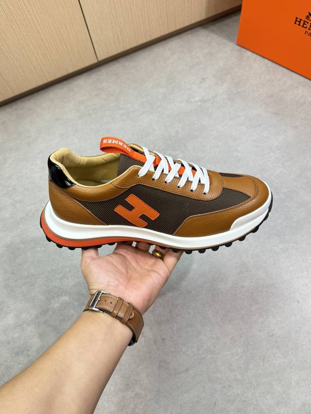 Factory direct price for men's sportswear and athletic shoes - High-end quality original casual athletic shoes - Upper: Lychee-textured calfskin, high-gloss canvas, brand 'H' logo stitched on the shoe body, brand logo webbing on the tongue - Lining: Water-dyed cowhide - Outsole: Ultra-lightweight TPR rubber; two-tone molded outsole - Super high quality control and exquisite workmanship: highlighting high-end luxury - Size: 39-44, 38, 45, custom orders available