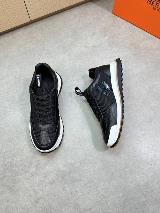 Factory direct price for men's sportswear and athletic shoes - High-end quality original casual athletic shoes - Upper: Lychee-textured calfskin, high-gloss canvas, brand 'H' logo stitched on the shoe body, brand logo webbing on the tongue - Lining: Water-dyed cowhide - Outsole: Ultra-lightweight TPR rubber; two-tone molded outsole - Super high quality control and exquisite workmanship: highlighting high-end luxury - Size: 39-44, 38, 45, custom orders available