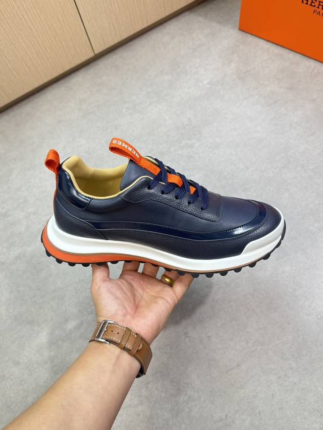 Factory direct price for men's sportswear and athletic shoes - High-end quality original casual athletic shoes - Upper: Lychee-textured calfskin, Nappa calfskin, contrasting color stitching on the shoe body, brand logo webbing on the tongue, heel, and other areas - Lining: Water-dyed cowhide - Outsole: Ultra-lightweight TPR rubber; two-tone molded outsole - Super high quality control and exquisite workmanship: highlighting high-end luxury - Size: 39-44, 38, 45, custom orders available