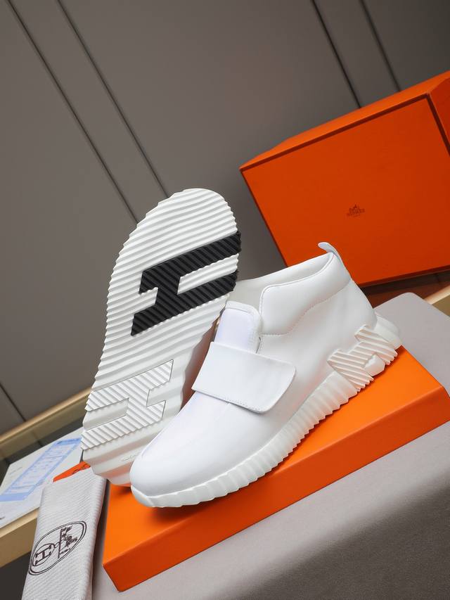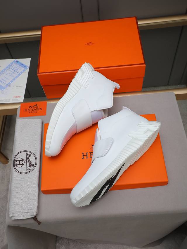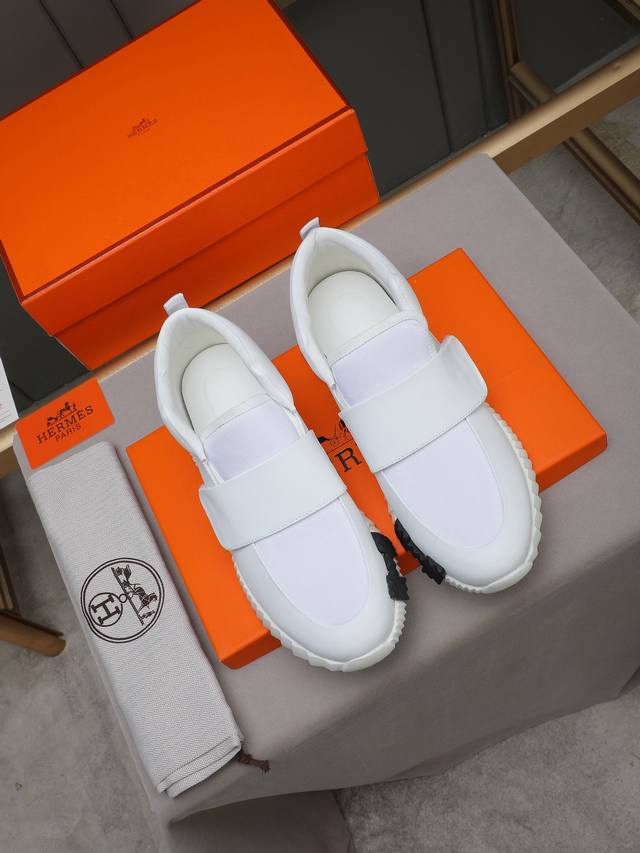 Factory direct price Hermes Bouuncing sneakers, men's casual sneakers, upper made of top-grain calfskin with washed sheepskin lining! High-quality feel, lightweight sole with contrasting pattern, creating a versatile and stylish look. Sizes: 38-44, 45 (custom made).