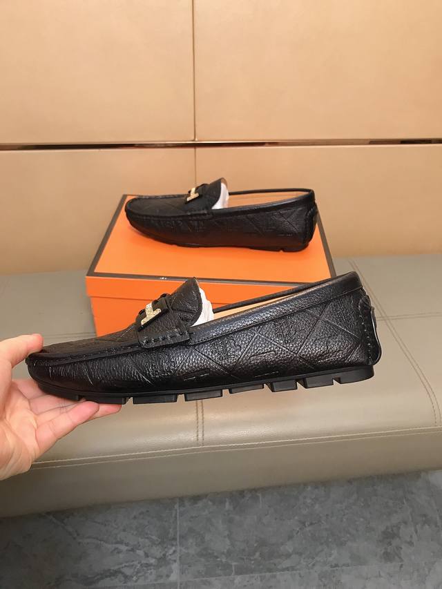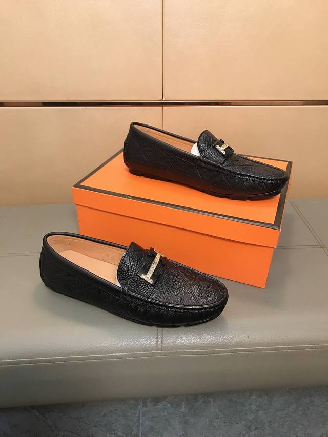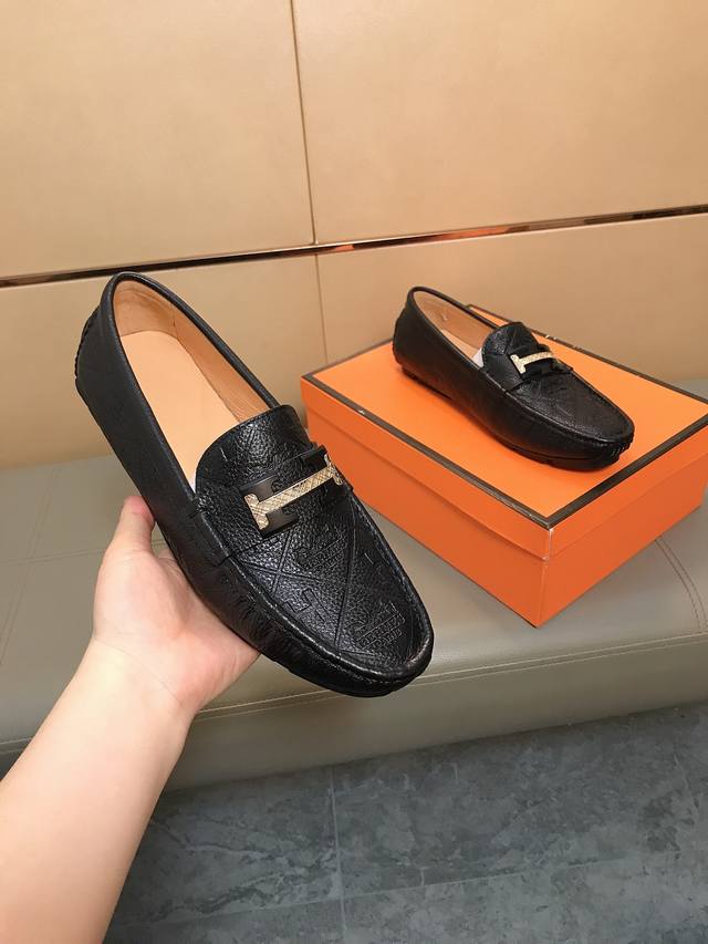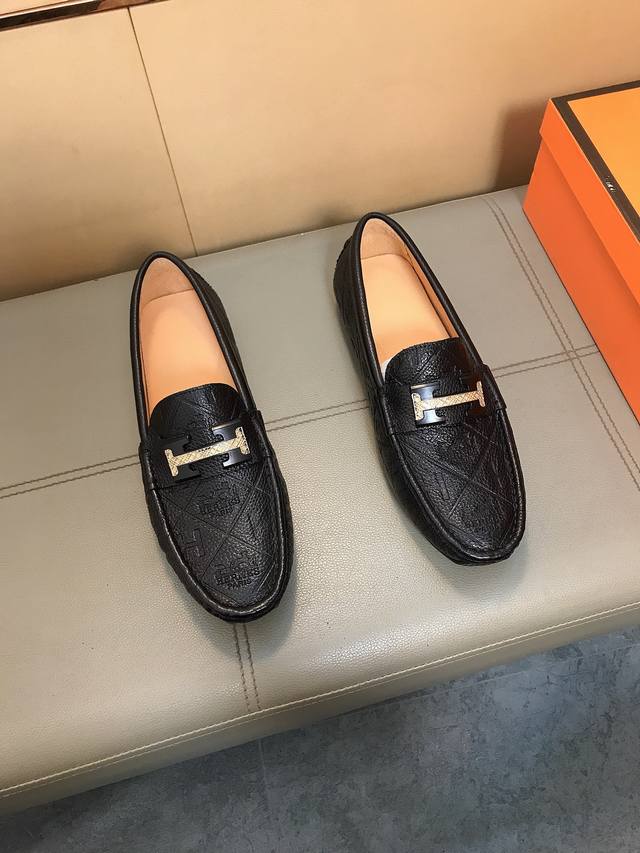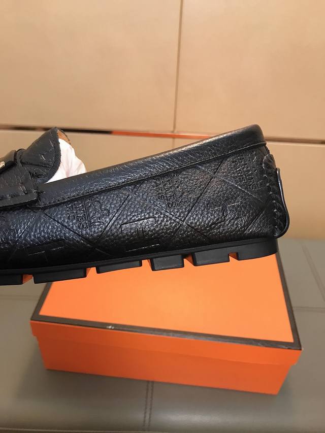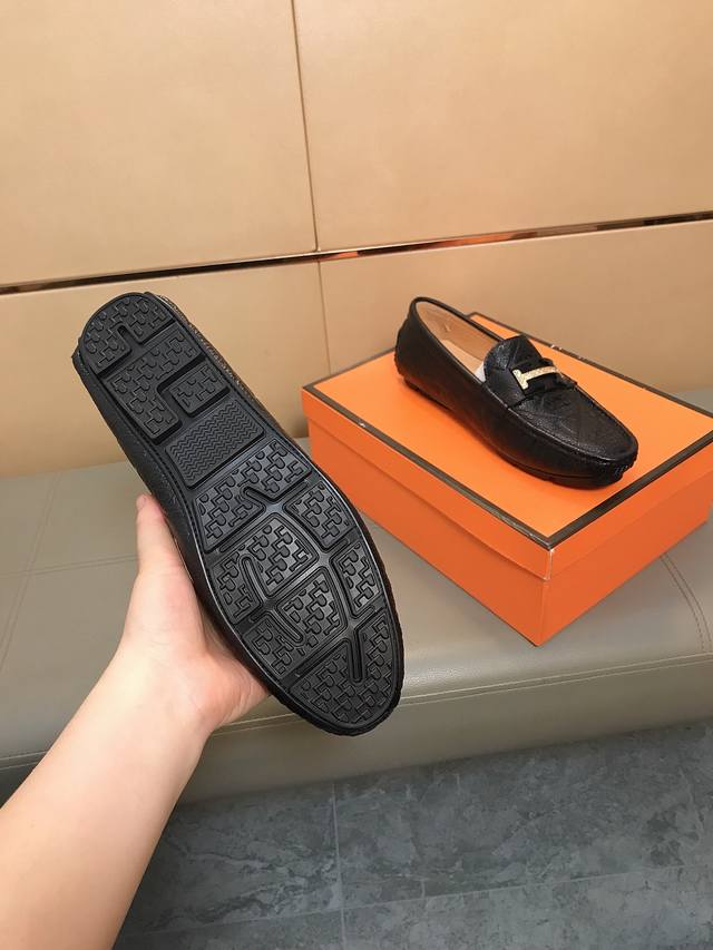 Factory direct price Hermes driving shoe series new arrival, men's slip-on shoes. The upper is made of imported Italian embossed cowhide, with a sheepskin lining; the leather is super soft and very comfortable. The design, combined with precise and beautiful stitching, exudes understated luxury. The comfortable sole design maximizes comfort and slip resistance. Sizes 38-44 DDD