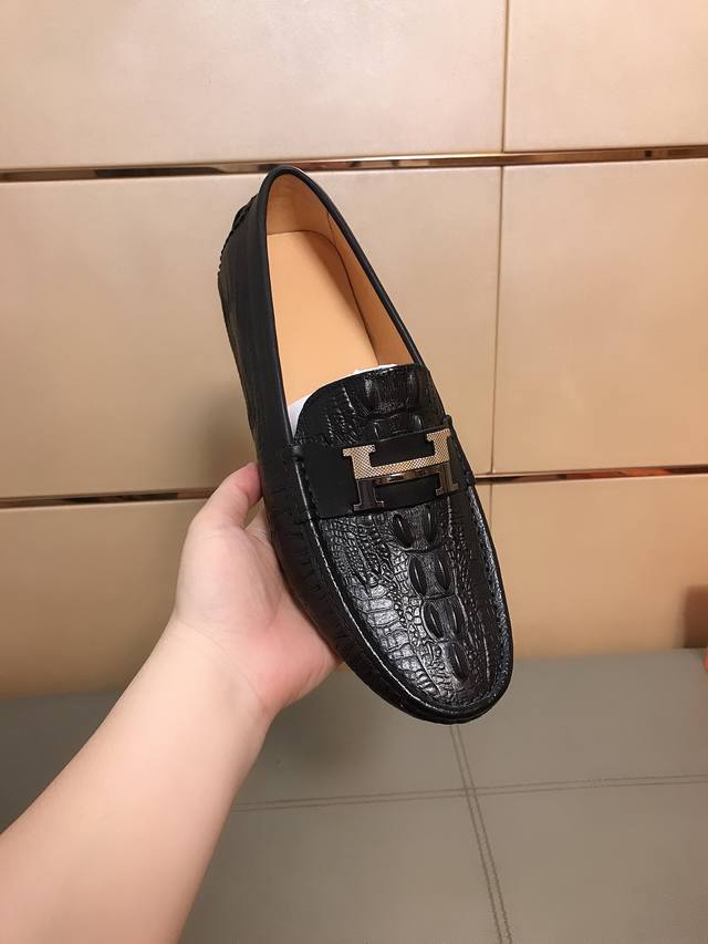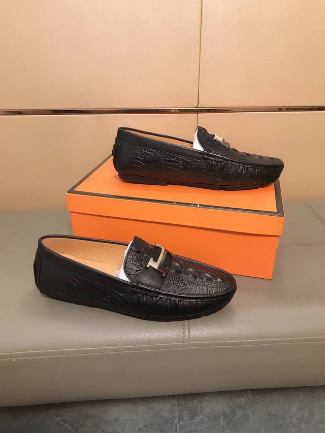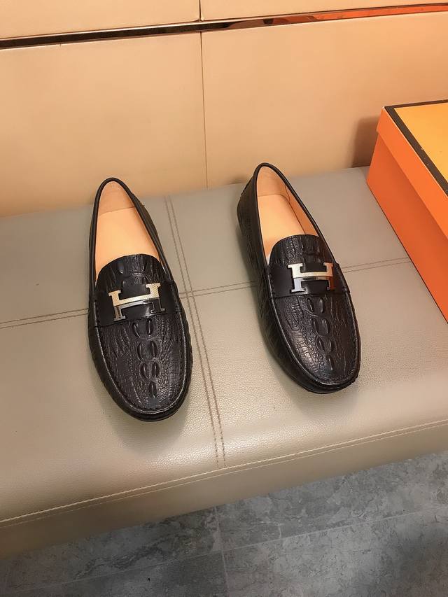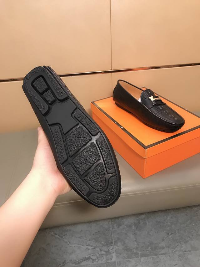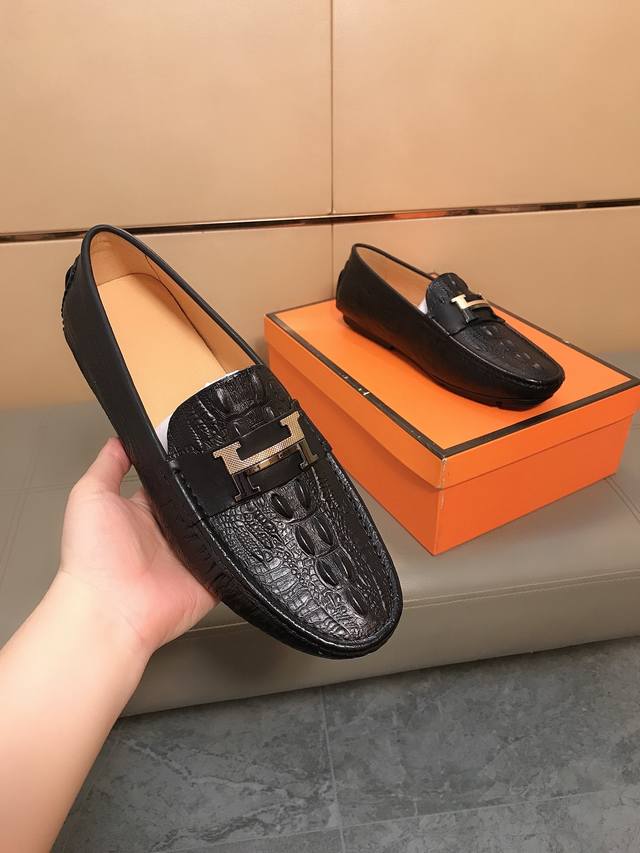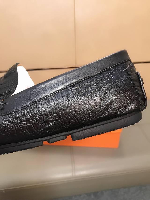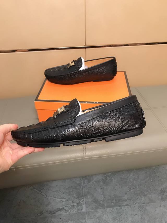 Factory direct price Hermes driving shoe series new men's slip-on shoes are here! The upper is made of imported Italian embossed cowhide, with a sheepskin lining. The leather is super soft and very comfortable to wear. The design, combined with precise and beautiful stitching, exudes understated luxury. The comfortable sole design ensures maximum comfort and slip resistance. Sizes 38-44.