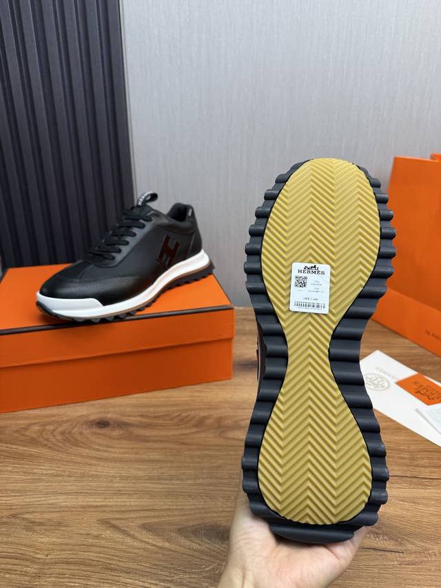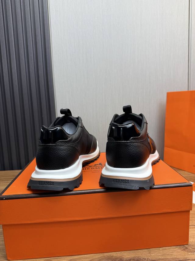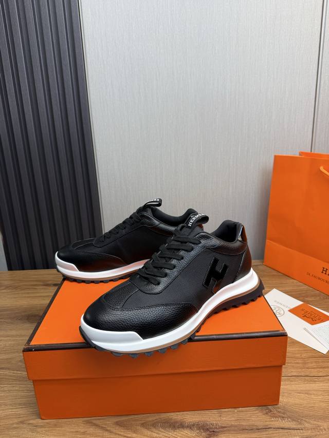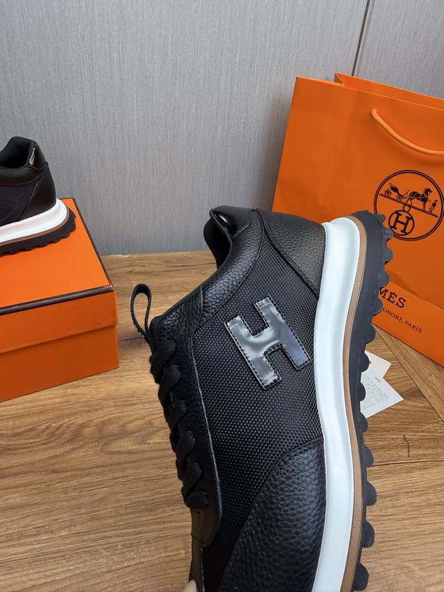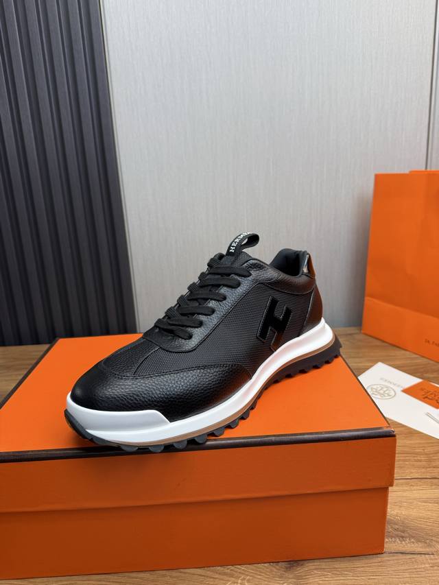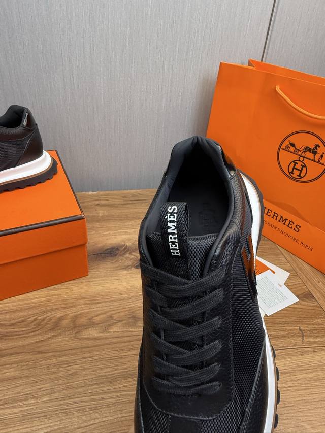 Factory direct price Hermes Leader sneakers! Multi-color patchwork high-tech twill, calfskin, and suede goatskin sneakers. Lightweight geometric sole for a stylish urban look. Product details: White and orange rubber sole; Black rubber sole with orange rubber inlays; Light natural leather inlays; White rubber toe; Beige lambskin insole and lining; Cotton straps with rubber lettering; Sole height: 4cm; Sizes: 39-40-41-42-43-44; 38.45 custom-made.