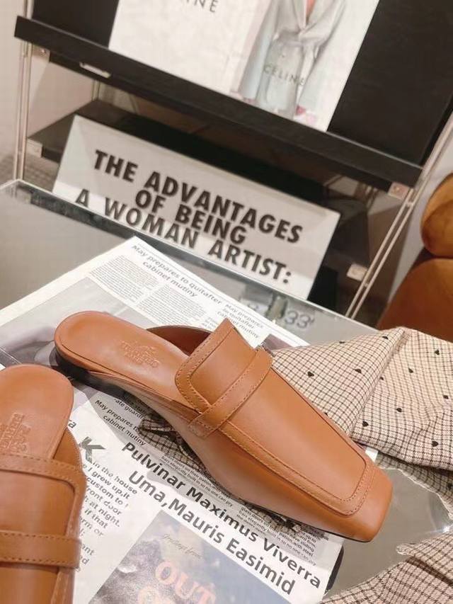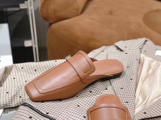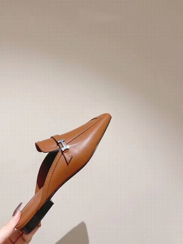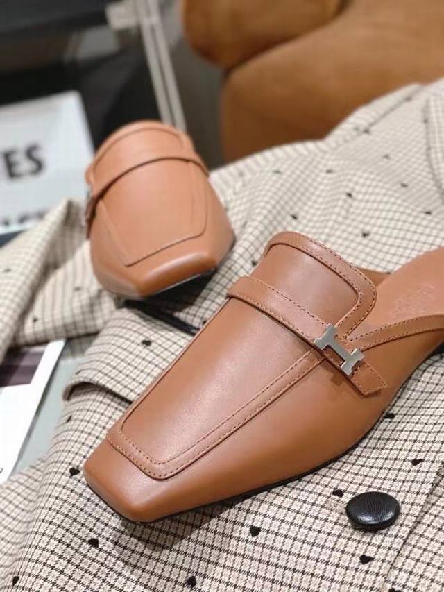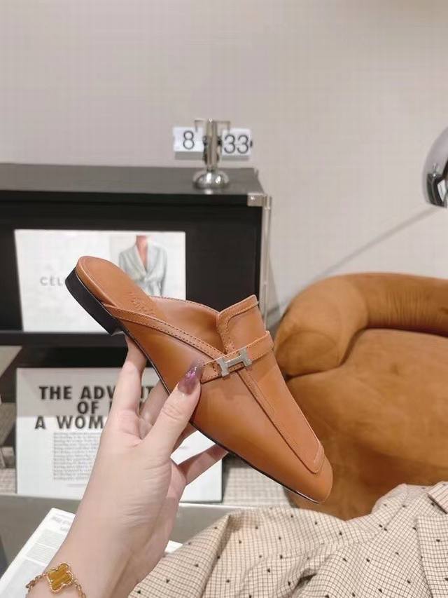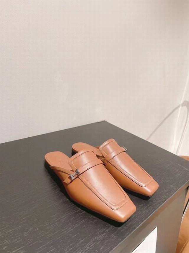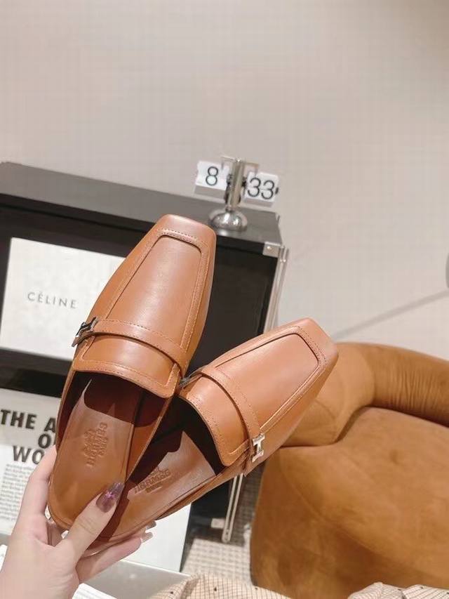 Factory direct price. Women's shoes, sportswear, original Hermes style, new Groupie square-toe H-buckle mules, slip-on, closed-toe half-slippers. Stylish, relaxed, easy to match, a must-have item. Material: Imported high-density sheepskin fabric, genuine leather outsole. Sizes: 35, 40, 41 (custom sizes available).