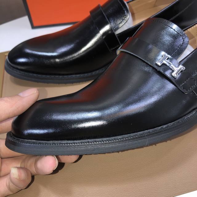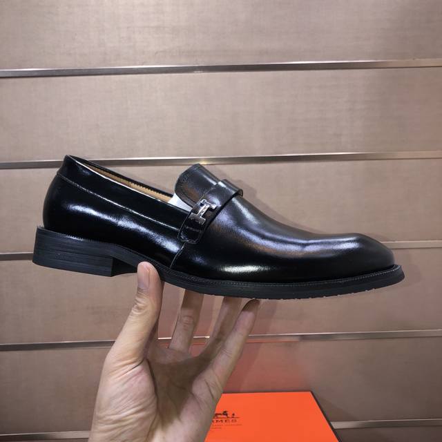 Factory direct wholesale Hermes dress shoes with cowhide lining. Italian top-tier luxury. It doesn't pursue novel styles and flashy colors, but attracts successful men with its flawless, elegant, and classic style. These dress shoes are extremely comfortable, and the simple, stable design allows you to easily match any style! The pattern is absolutely original, 1:1 replica, and we are meticulous in our choice of materials, using imported cowhide and a cowhide lining for exceptional quality! Sizes: 39-45. 45 custom sizes available.