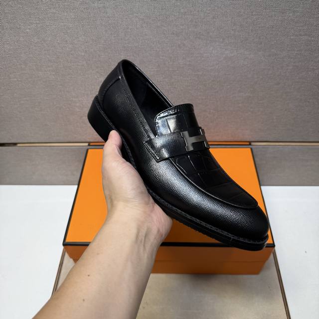 Factory p price men's men's sports shoes original Hermes ~ Men's casual formal leather shoes 2025Z counter simultaneous sale size: 39-44 # 1 color upper made of multi-material stitching genuine leather lining, comfortable and breathable, sole: original comfortable and wear-resistant outsole, real shot real thing is better