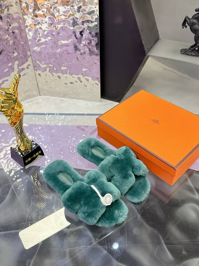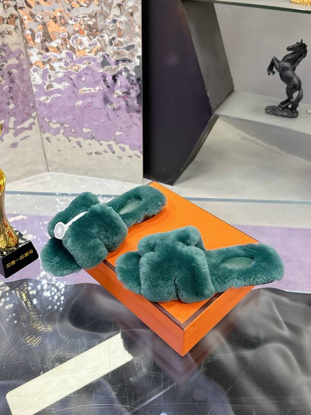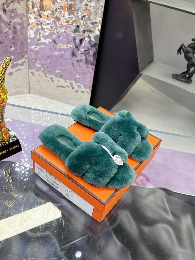Factory Price: DDD Hermes Classic H Slippers, High-End Wool Craftsmanship DDD Classic Evergreen Series Item DDD Fabric: Shearling DDD Insole Material: Scraped Straight Fur DDD All Insole Materials: Genuine Leather Pulp + Italian Process Combination Insole DDD Outsole: Italian Genuine Leather Sole with Hand-stitched Threading DDD Sizes: 35-40 Original Full Packaging DDD Details Visibly Original Replica, Comparable to Original Orders DDD