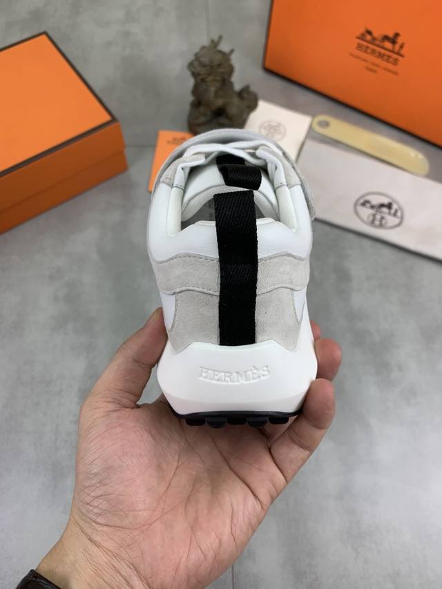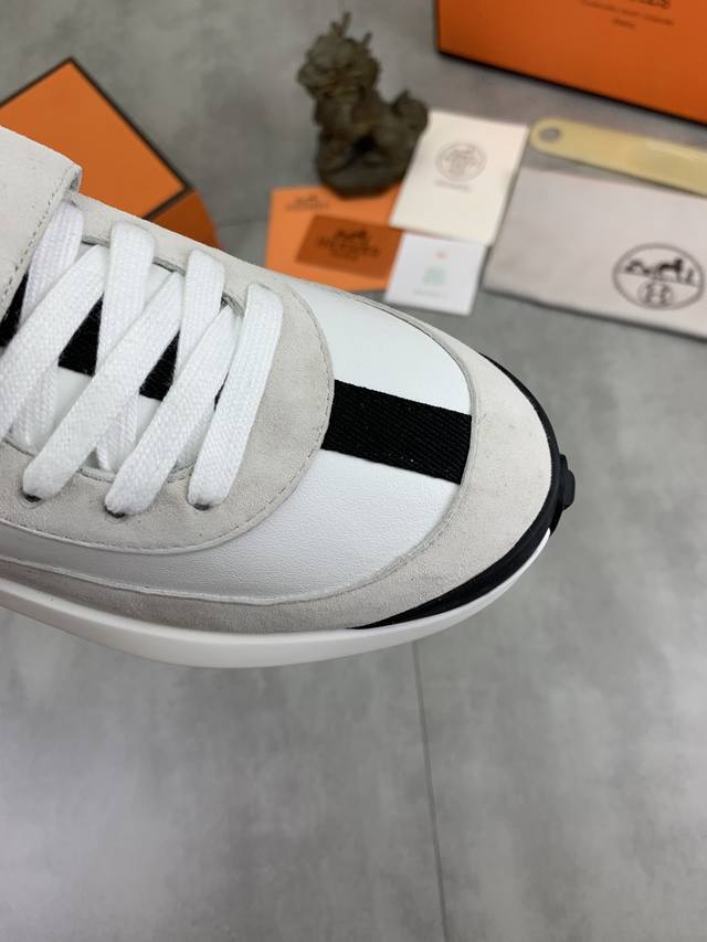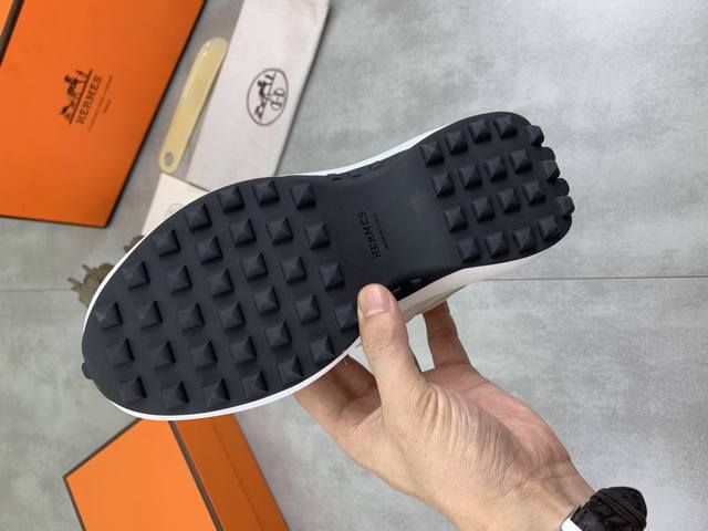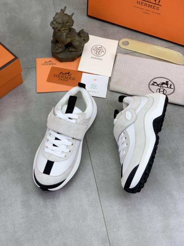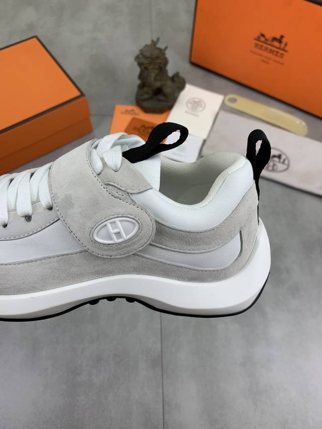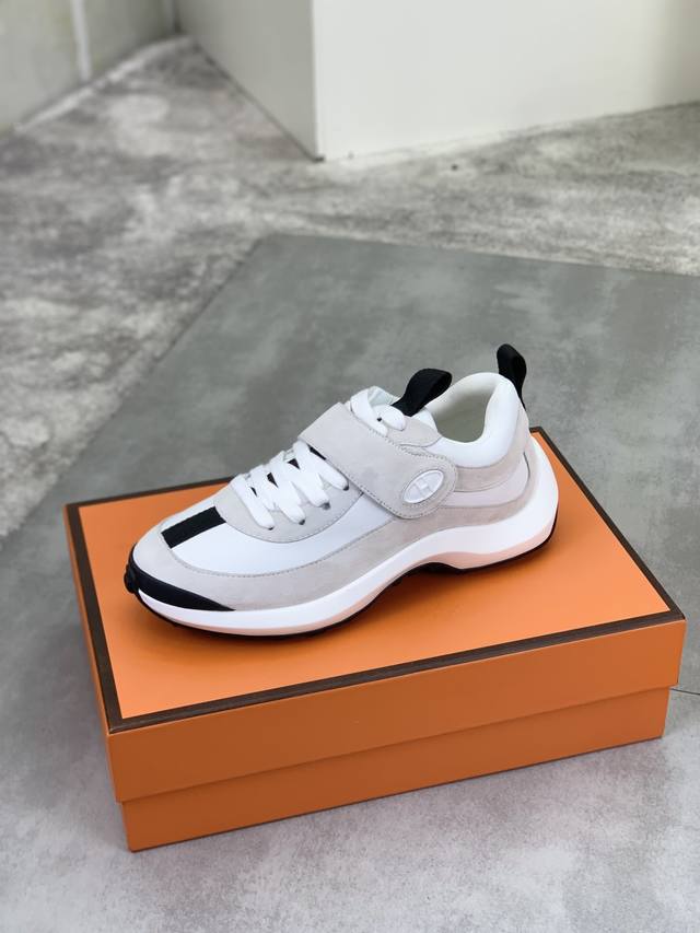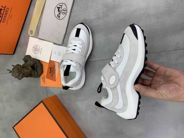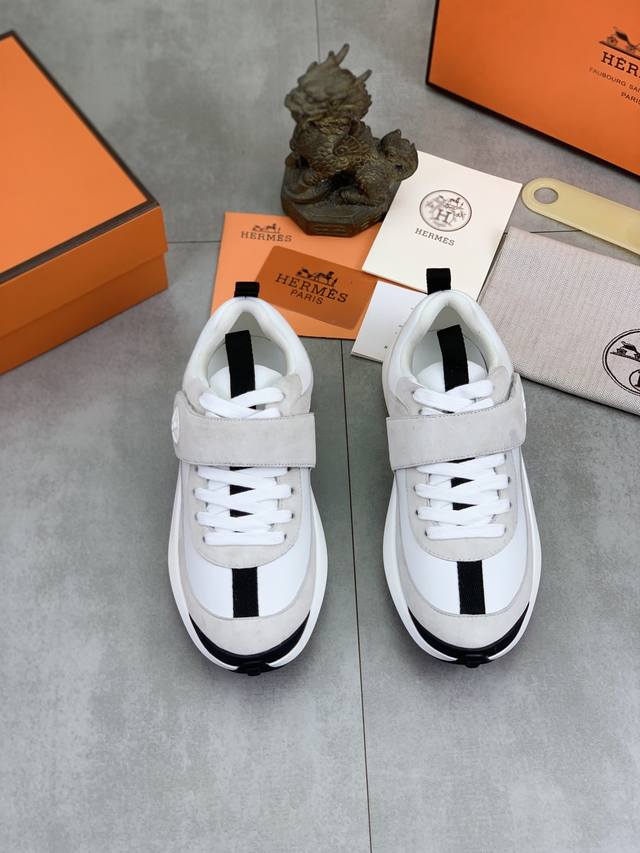 Factory Price, Top-Tier Original Hermes Couple Style Drift Sneaker, Autumn New Casual Sports Shoes. Original purchase, developed and manufactured. Hermes men's classic series, technologically breathable fabric paired with cowhide leather, casual sneakers, combining high-tech breathable materials and cowhide leather. Features Hermes exclusive button decoration on the side, a full "H" slanted design on the outsole, and vibrant colors showcasing vitality, continuing the brand's design inspiration. Lightly stroll through the city, feeling unrestrained comfort. Comes with exquisite packaging. Material: Original custom breathable material + top-grain cowhide. Lining: Cowhide insole. Outsole: Molded and hollowed-out PU + TPU material. Size: Women's 34-40 41, custom-made men's 39-45. 8 colors available. Premium packaging.